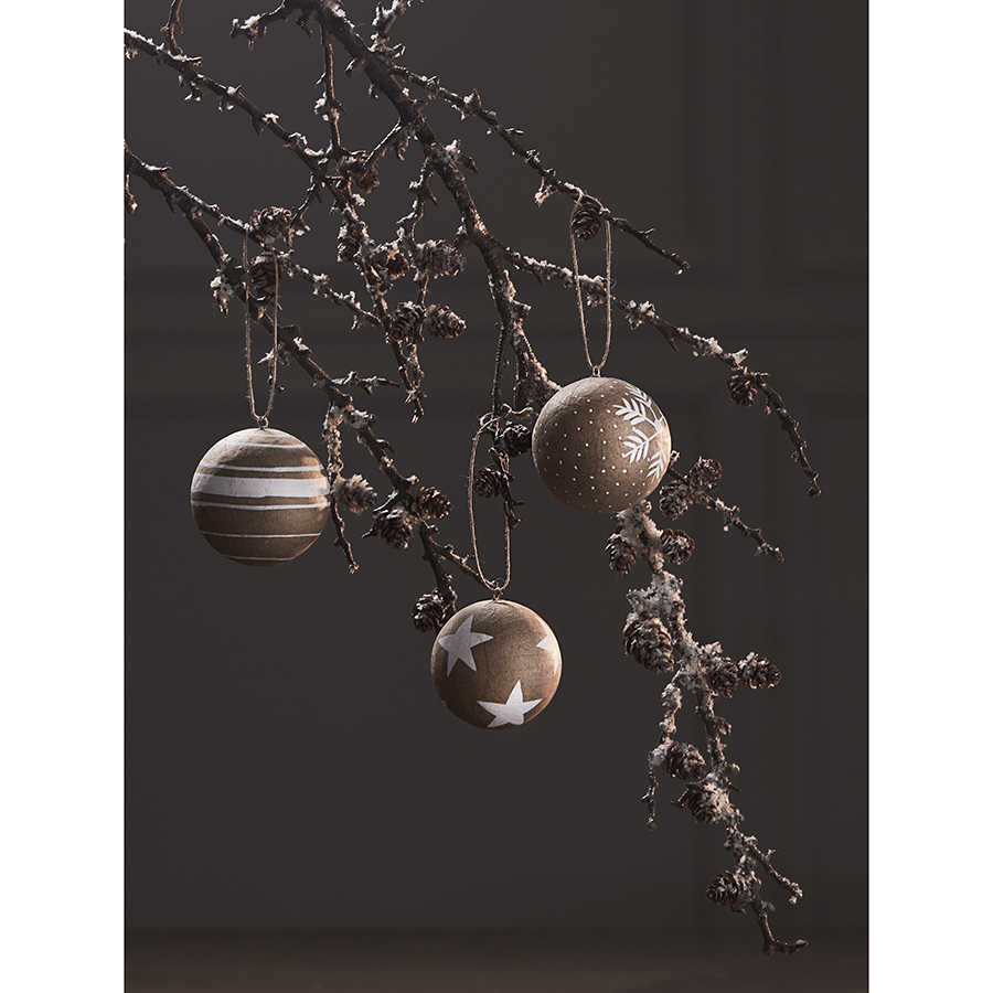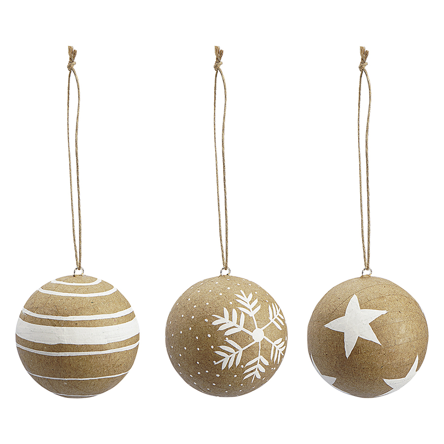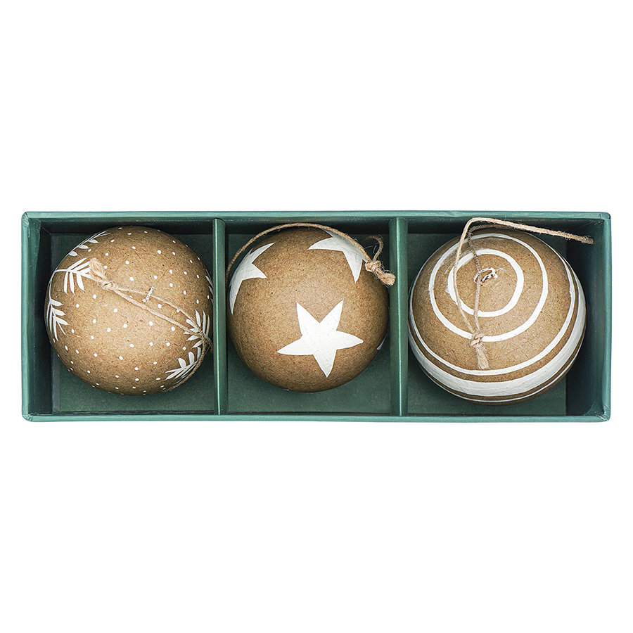 Набор елочных шаров из папье-маше Zero waste из коллекции New Year Essential, 3 шт., Tkano