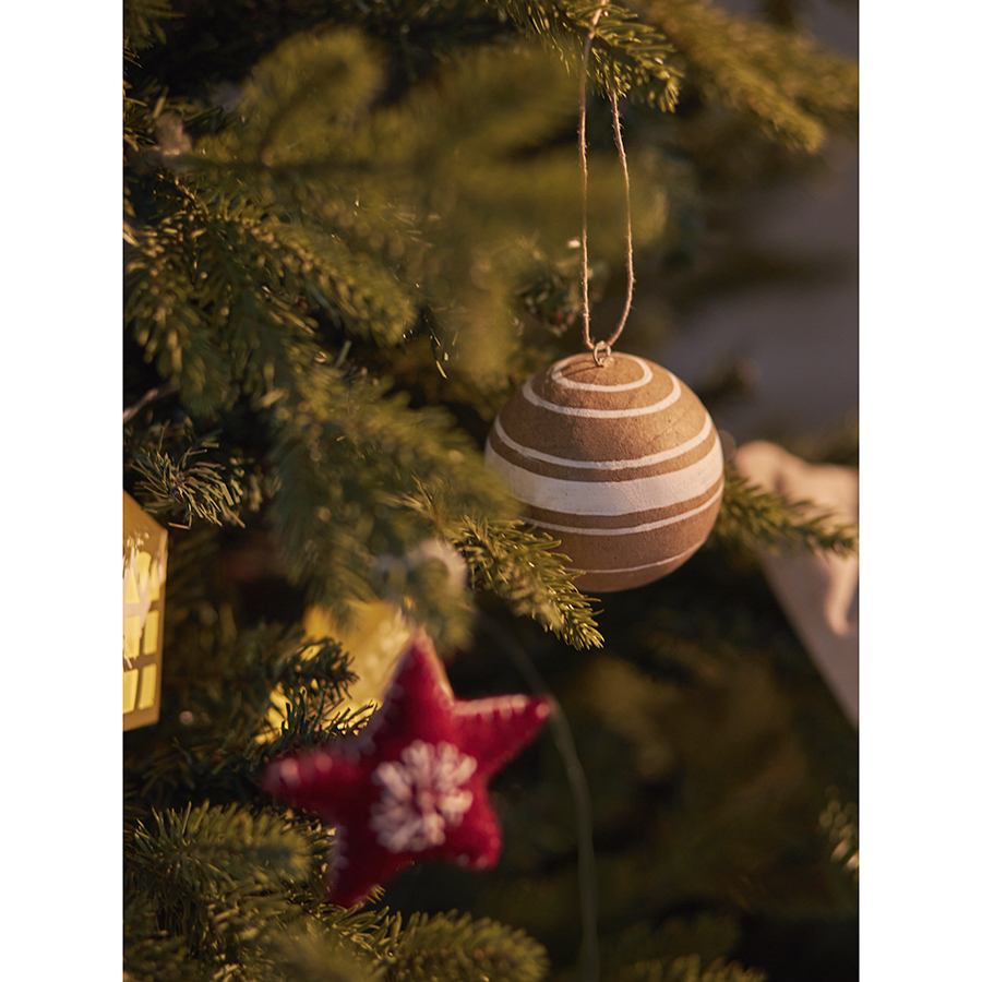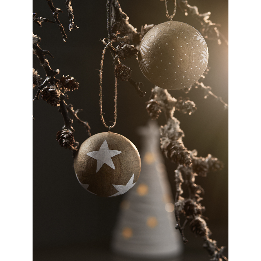 "Набор елочных шаров из папье-маше Zero waste из коллекции New Year Essential привнесет в интерьер ностальгические нотки и напомнит о временах, когда новогодние украшения создавались вручную и носили особенный характер.