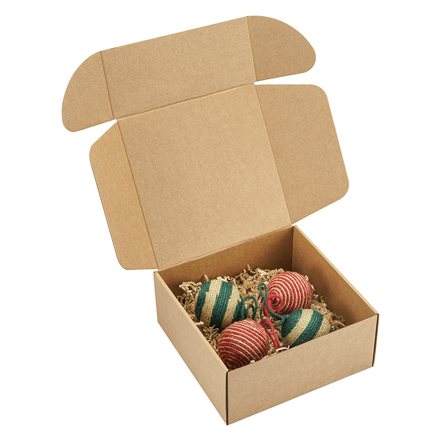Материалы: джут, картон. Размеры: 7х7х8 см. Количество украшений в наборе: 4 шт."