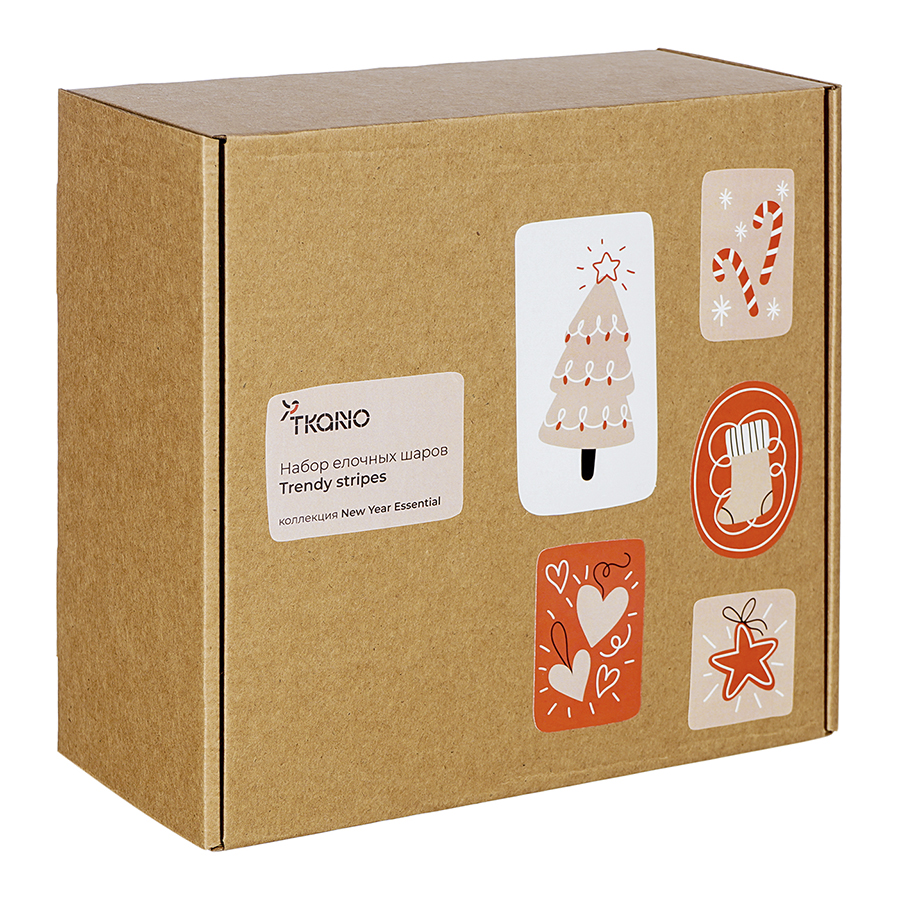 Набор елочных шаров Trendy stripes из джута и картона из коллекции New Year Essential, 4 шт., Tkano