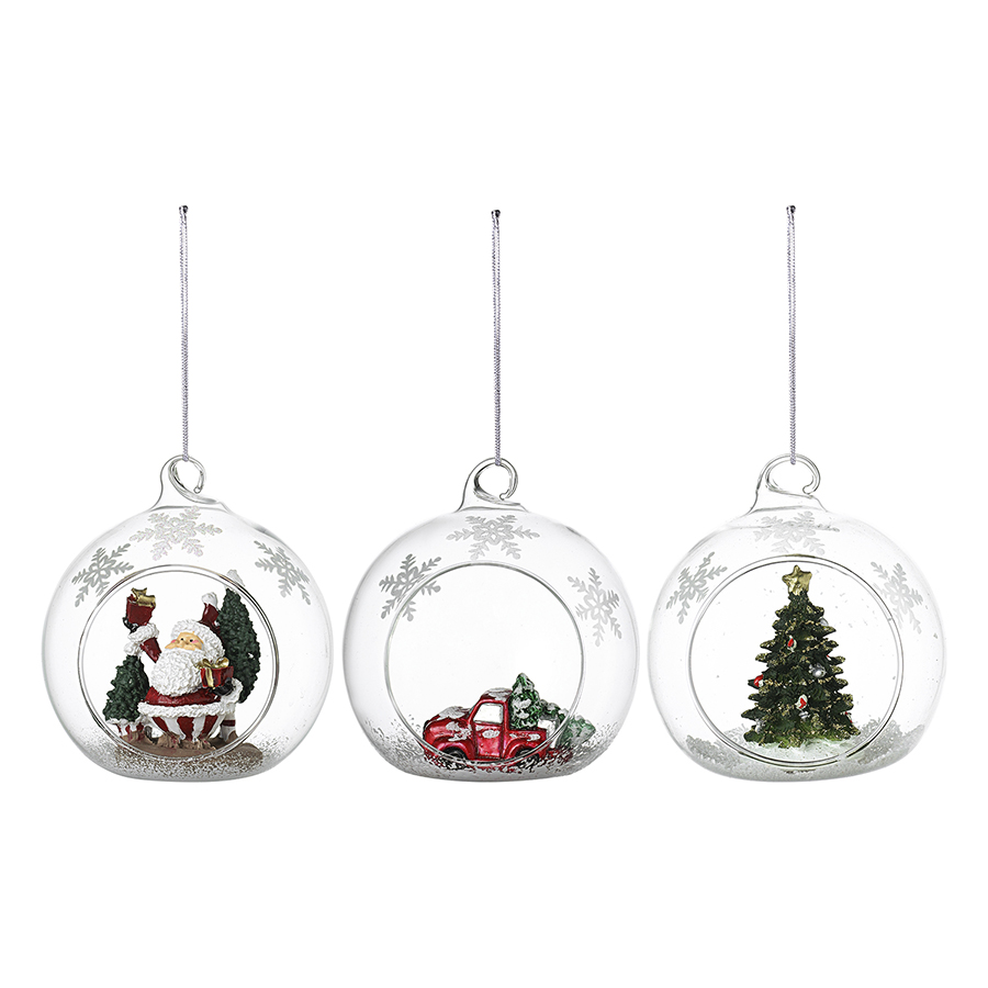 - Каждое украшение выполнено в виде стеклянного шара с главными символами Нового года внутри.