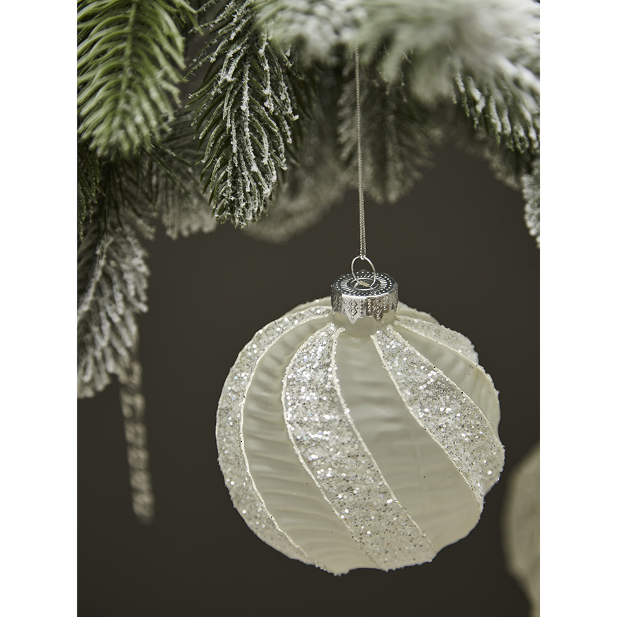 - Ёлочные украшения из прозрачного стекла эффектно смотрятся на хвое любого цвета.