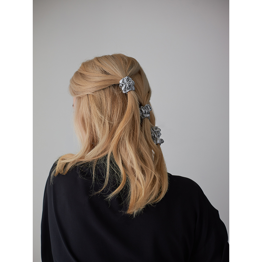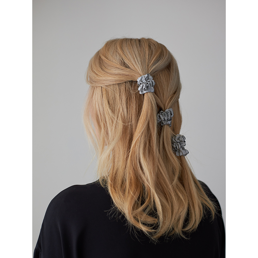 "Шелковые резинки для волос светло-серого цвета из коллекции Essential – не только модный аксессуар, но и простой способ придать волосам здоровый, ухоженный вид. Благодаря уникальным свойствам материала эти резинки не оставляют жестких заломов и не травмируют локоны. Вы можете дополнять ими любой образ, как повседневный, так и для особых случаев.