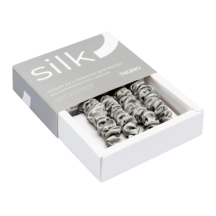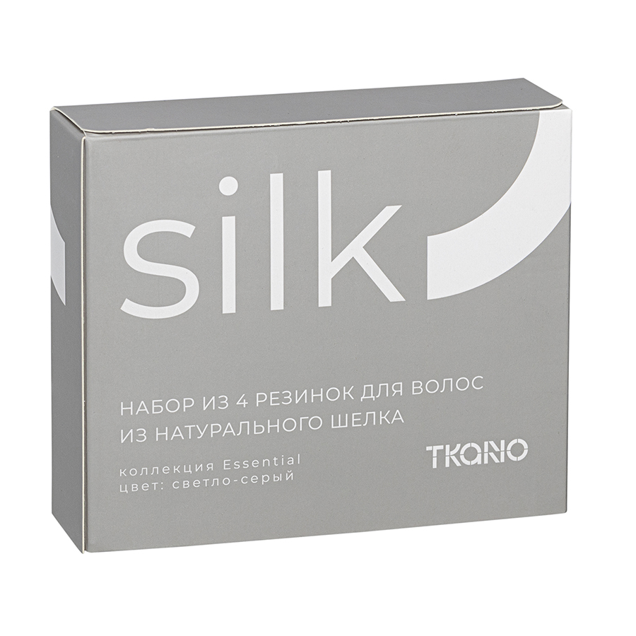 Набор из 4 шелковых резинок для волос светло-серого цвета из коллекции Essential, Tkano