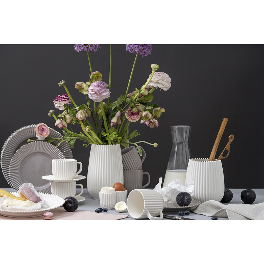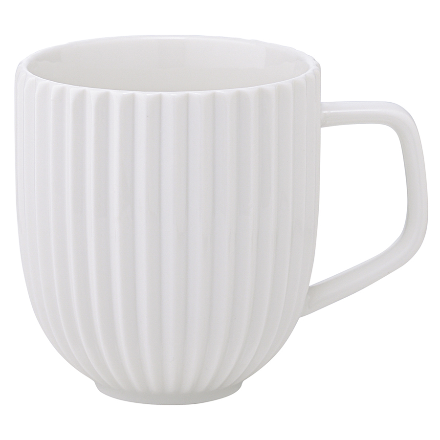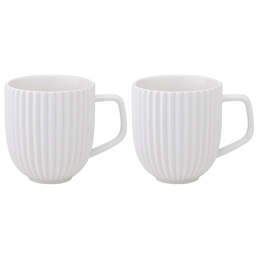 "Набор из двух фарфоровых кружек белого цвета — для тех, кто любит большие порции и долгие чаепития. Несмотря на свой размер, кружки очень легкие и удобно ложатся в руку, а рифленая поверхность добавляет дизайну утонченность и изящество. А еще они идеально сочетаются с другой посудой из серии Edge — тарелками, салатниками, сахарницами, вазами и другими предметами.