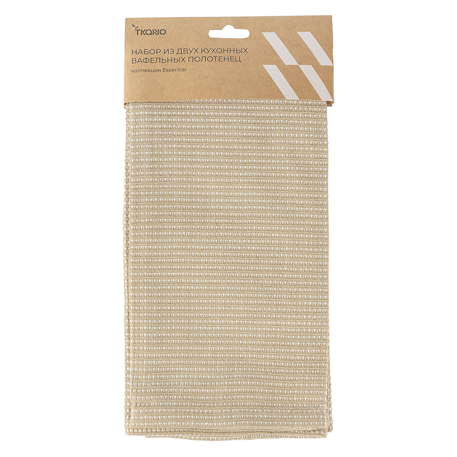 Набор из двух кухонных вафельных полотенец бежевого цвета из коллекции Essential, 50х70 см