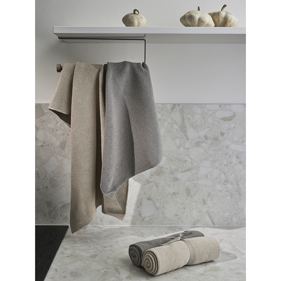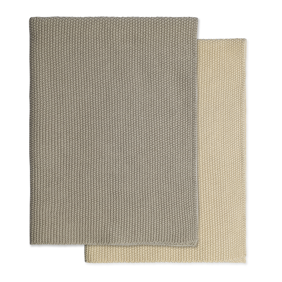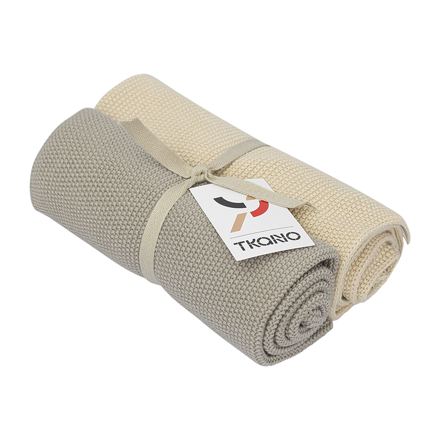 Набор из двух кухонных вязаных полотенец из коллекции Essential, серое/экрю, Tkano