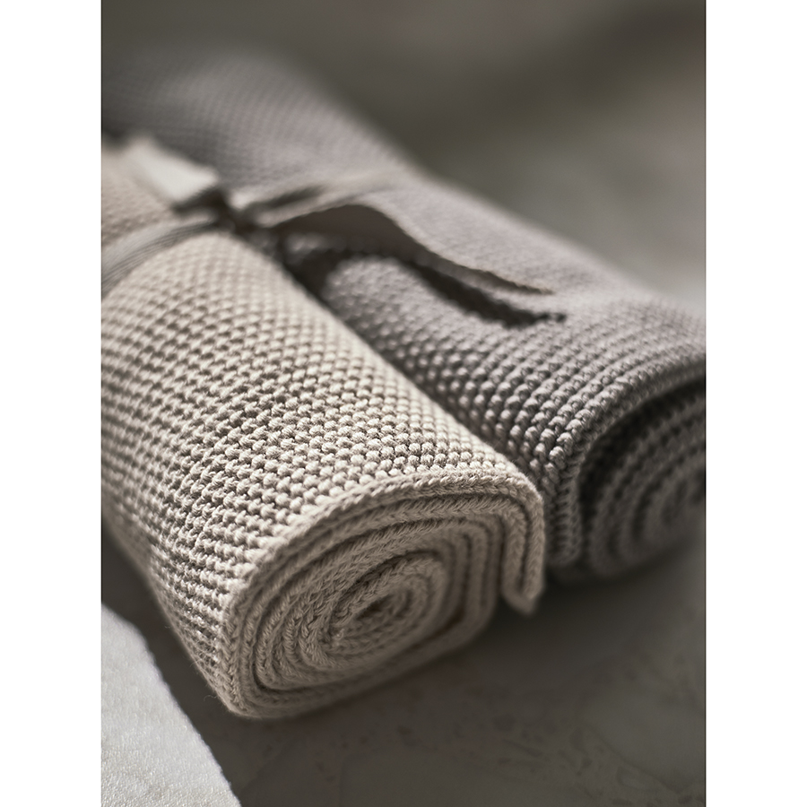 - Полотенца нейтральных оттенков вписываются в любой интерьер, а их вязаная текстура добавляет в оформление нотку утонченности.