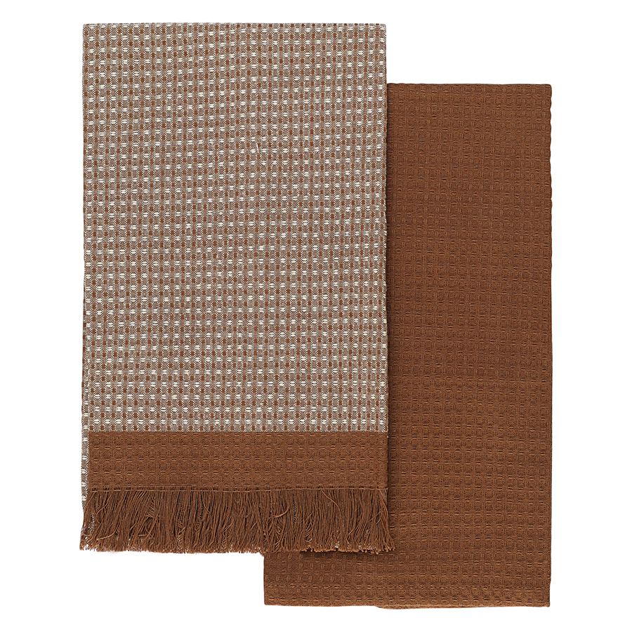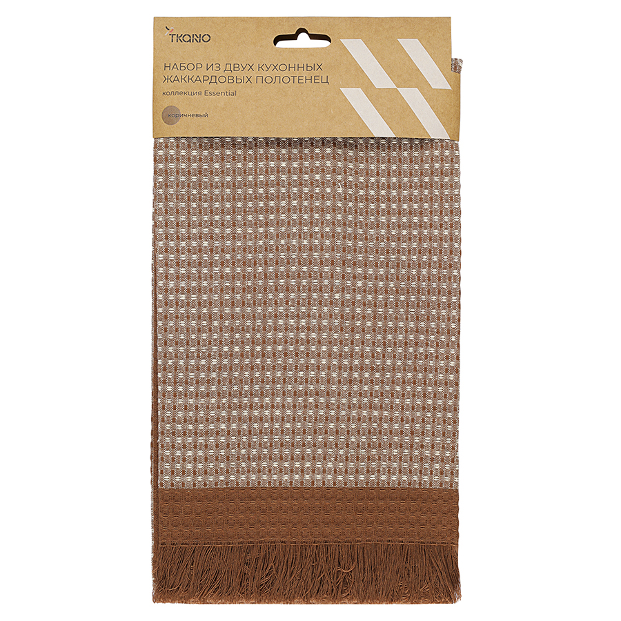 Набор из двух кухонных жаккардовых полотенец коричневого цвета из коллекции Essential, 50х70 см, Tkano