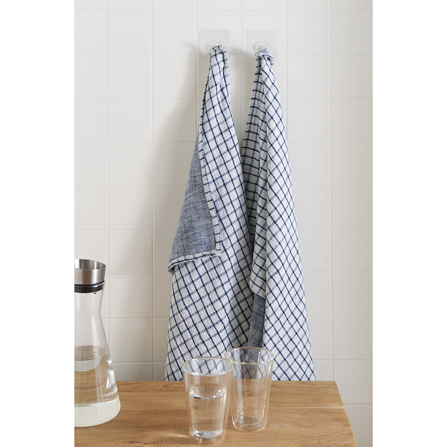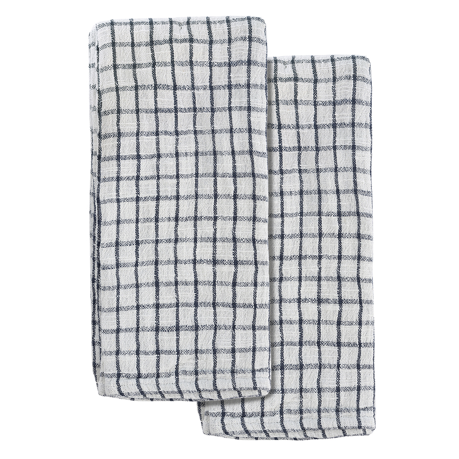 "Набор из двух муслиновых полотенец с графичным дизайном из коллекции Essential станет помощником на кухне. Полотенца в серо-синей гамме имеют более темную лицевую сторону, а с изнаночной украшены вытянутой клеткой. , ,Хлопковый муслин отлично впитывает и испаряет влагу, не деформируется и не линяет при стирке, на нем не образуются катышки. Подходит для ежедневного использования и не оставляет ворсинок при протирании посуды.