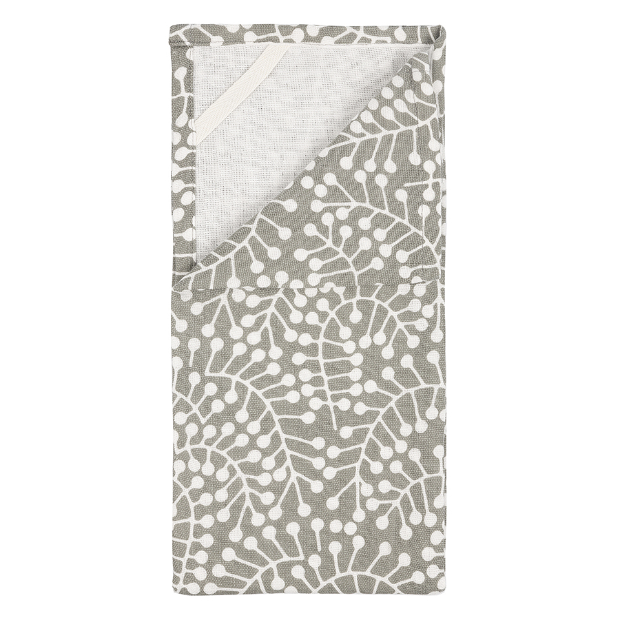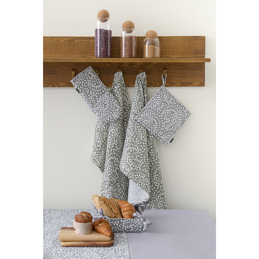 "Набор из двух муслиновых полотенец серого цвета с принтом Спелая Смородина из коллекции Scandinavian touch станет ежедневным помощником на кухне. Полотенца легко сочетать с другим кухонным текстилем из той же линейки, а лаконичный растительный принт привнесет в интерьер нотку свежести.
