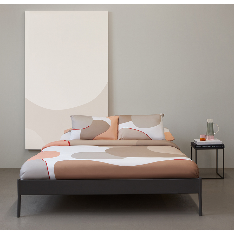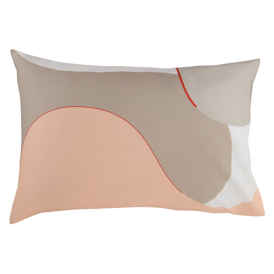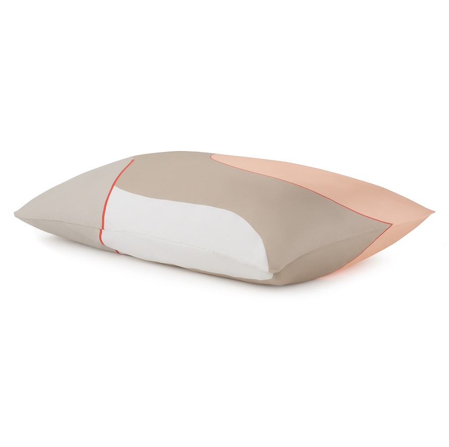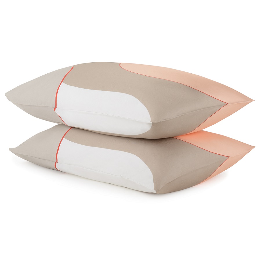 "Набор из двух наволочек из сатина бежевого цвета с авторским принтом из коллекции Freak Fruit станет альтернативой однотонным изделиям и будет ярким дизайнерским акцентом в интерьере любой спальни. Абстрактный принт на каждом изделии не имеет повторяющегося раппорта и представляет собой единую законченную картину.