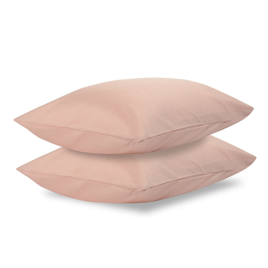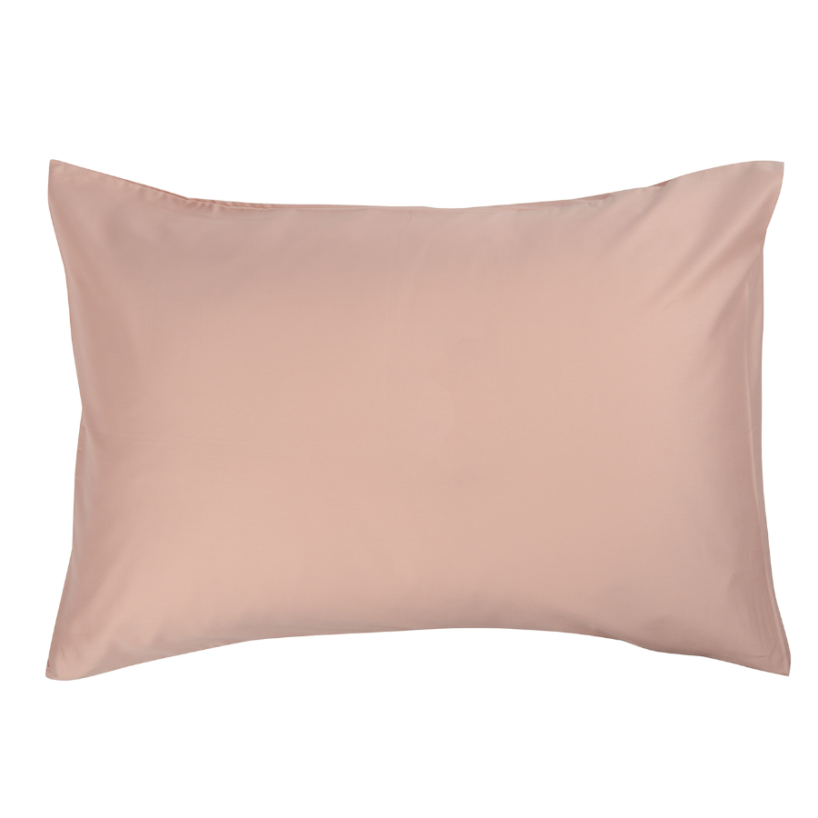 "Комплект из двух однотонных наволочек цвета пыльной розы выполнен из гладкого хлопкового сатина. Прочный, приятный на ощупь материал с характерным блеском не электризуется и не вызывает аллергию. Плотность материала - 210ТС.