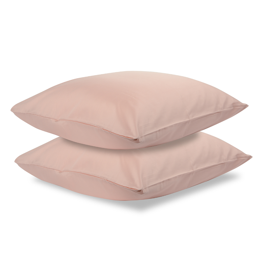 "Комплект из двух однотонных наволочек цвета пыльной розы выполнен из гладкого хлопкового сатина. Прочный, приятный на ощупь материал с характерным блеском не электризуется и не вызывает аллергию. Плотность материала - 210ТС.