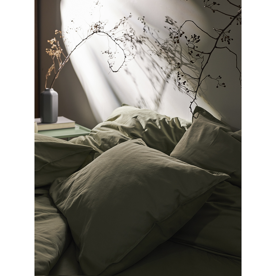 Набор из двух наволочек из сатина цвета шалфея с брашинг-эффектом из коллекции Essential, 50х70 см, Tkano