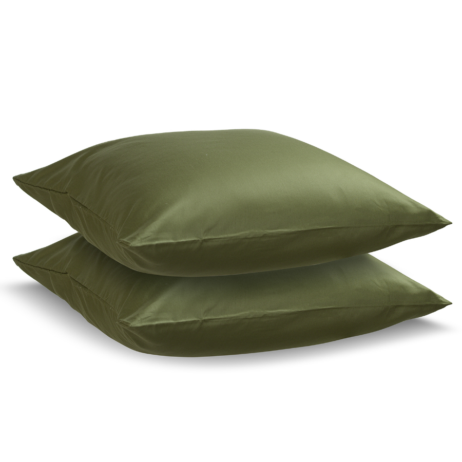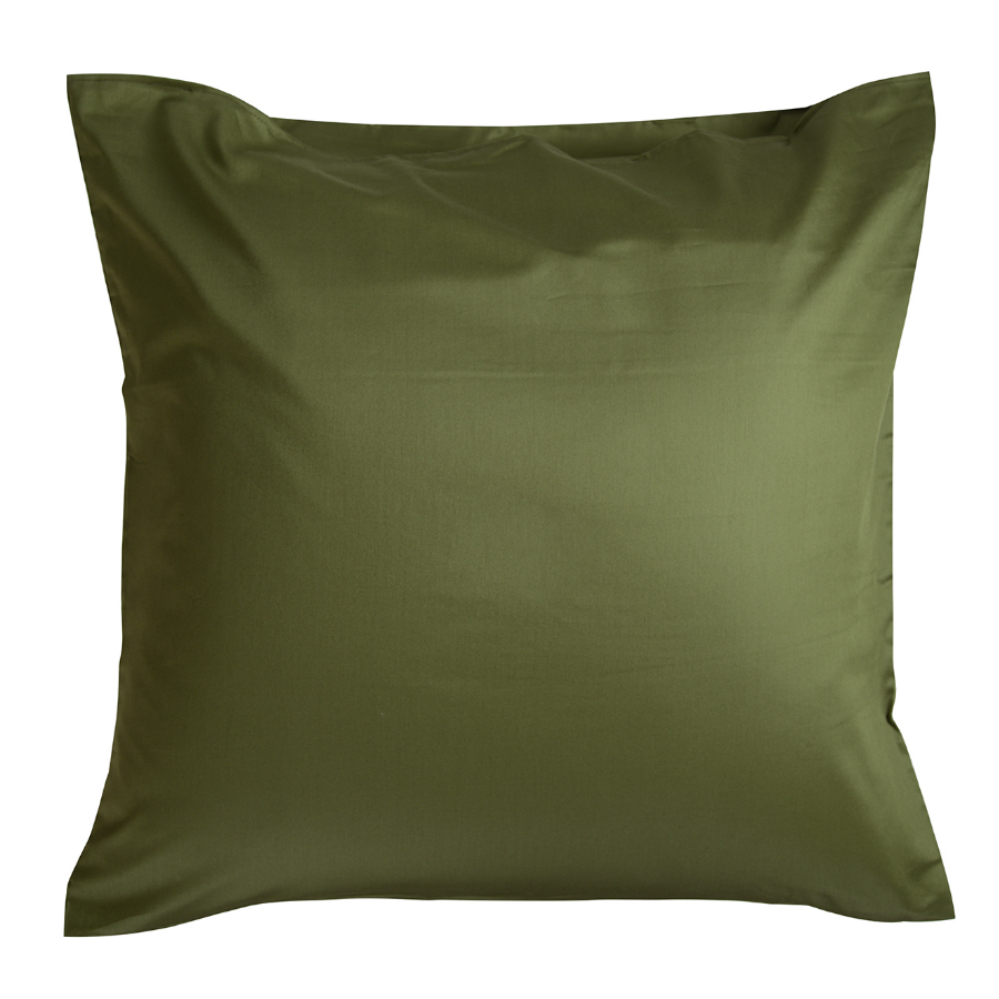 "Комплект сатиновых наволочек в насыщенном оливковом цвете - идеальная пара для простыни в тон и пододеяльника с контрастным принтом. Исключительная нежность сатина плотностью в 210ТС и натуральный хлопок - все, что нужно для идеального отдыха.