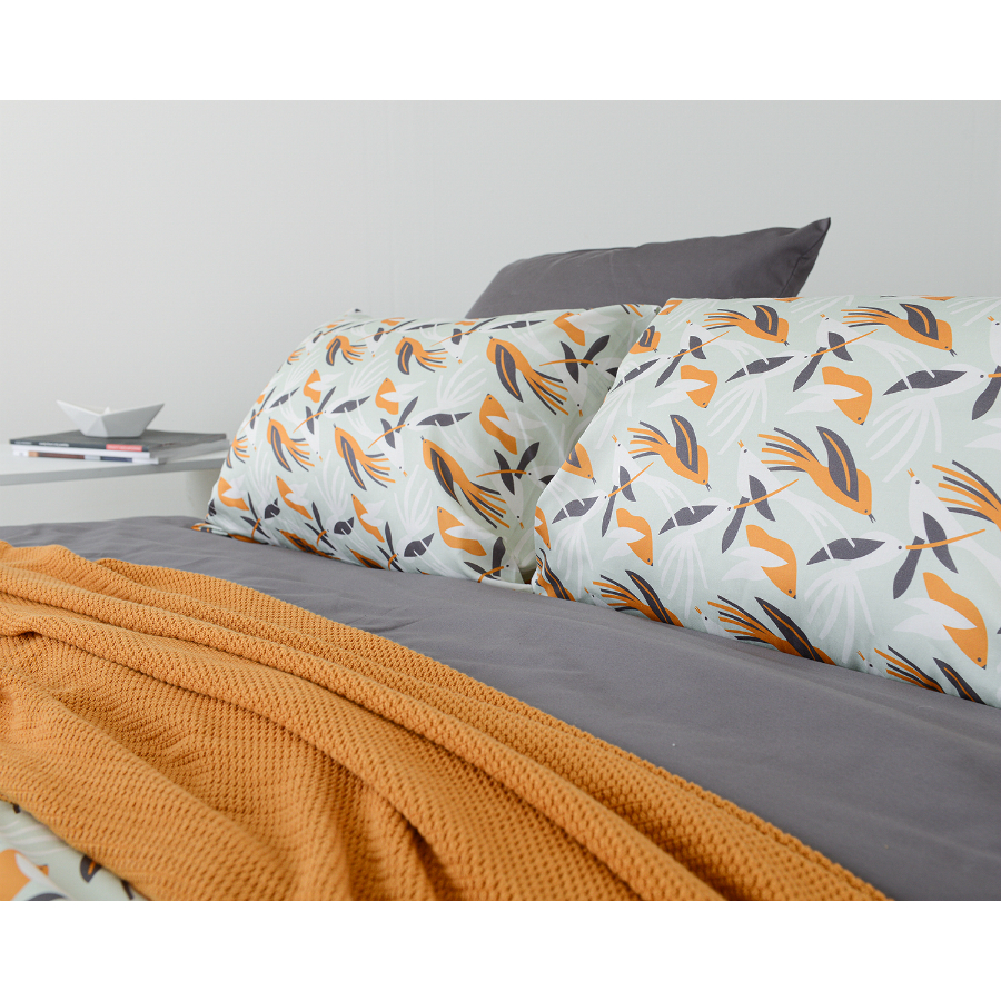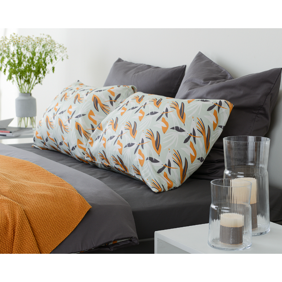 "Комплект из двух наволочек с анималистическим принтом Birds of Nile, выполненном в природных цветах, станет прекрасным акцентом в любом интерьере. Гладкий, приятный на ощупь материал плотностью 210 ТС отличается особым способом пряжи – нити переплетаются в скрученном виде, что придает ткани дополнительную прочность.