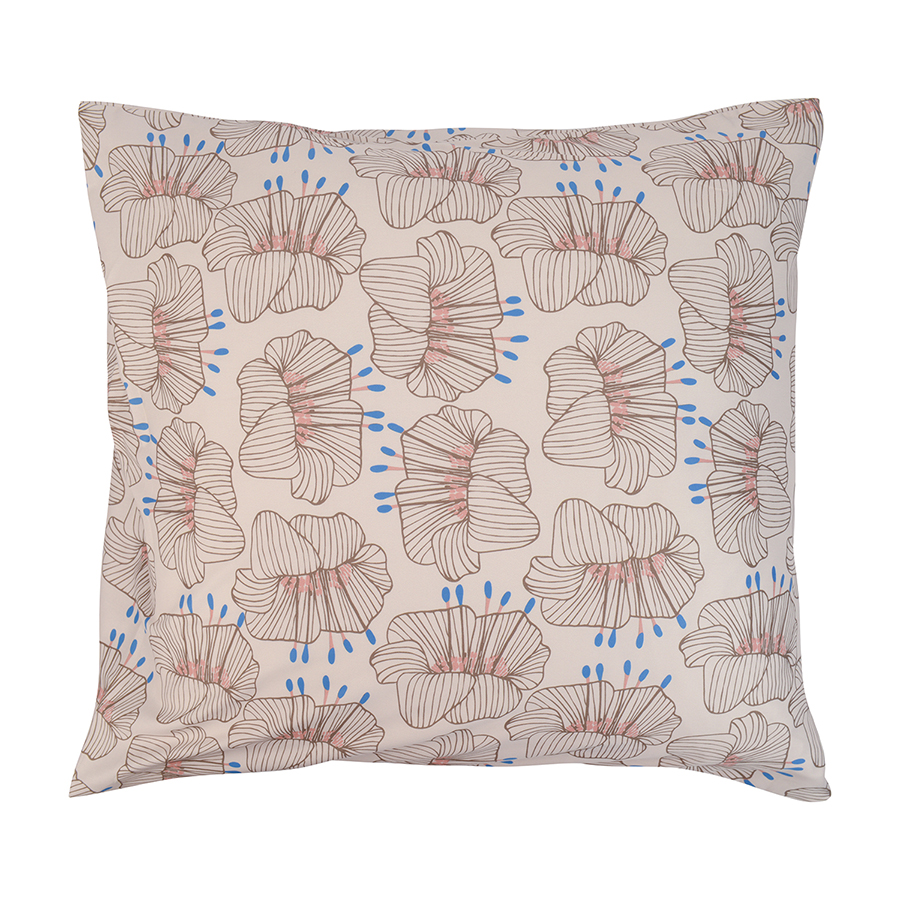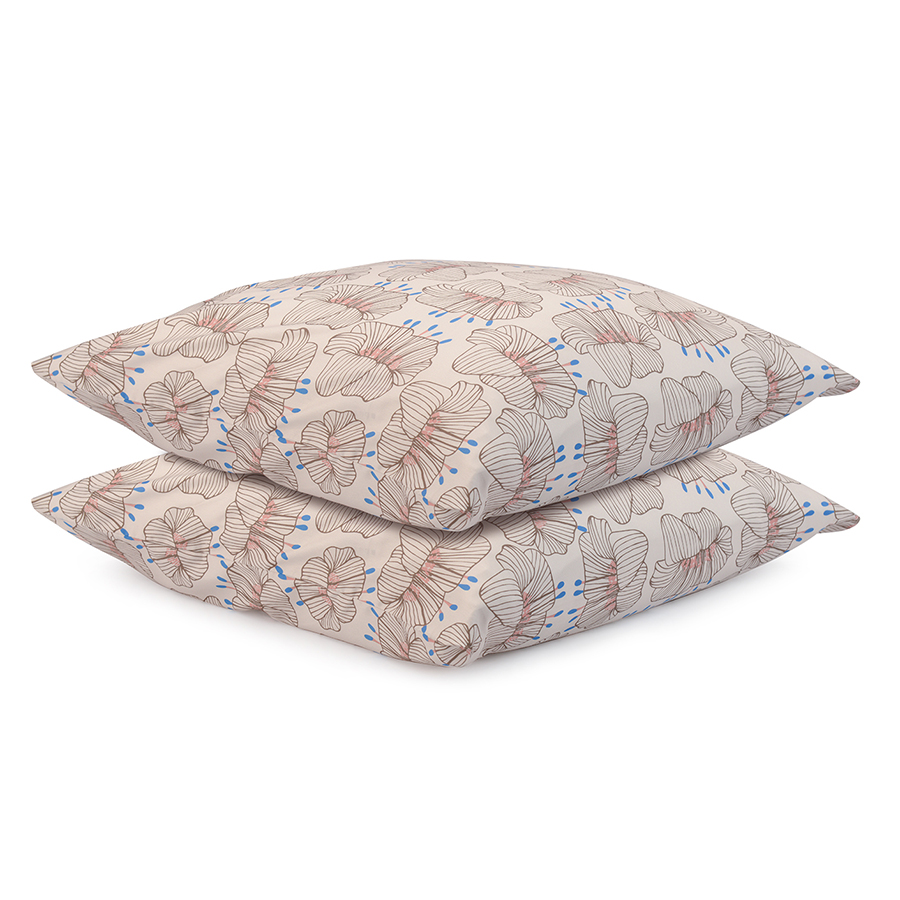 "Набор из двух наволочек из сатина с крупным графичным принтом ",Цветы", в тематике бескрайних российских степей одинаково хорошо подходит как для классического, так и современного интерьера. , ,Гладкий, приятный на ощупь материал плотностью 210 TC отличается особым способом пряжи – нити переплетаются в скрученном виде, что придает ткани дополнительную прочность.