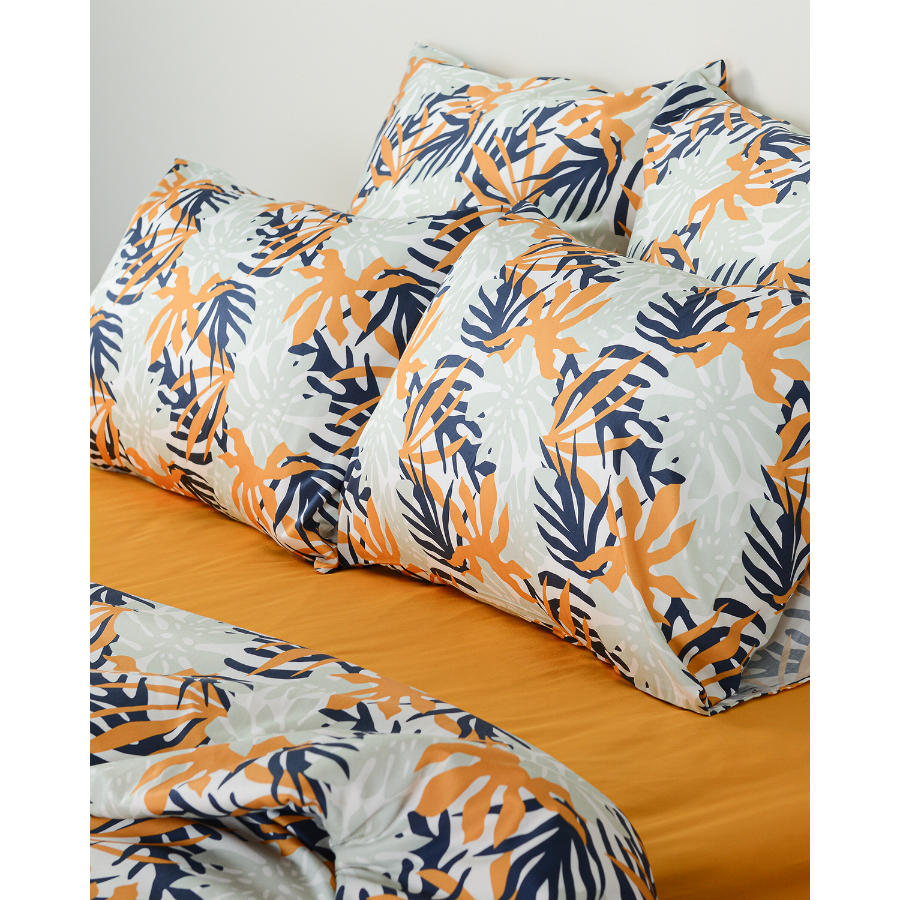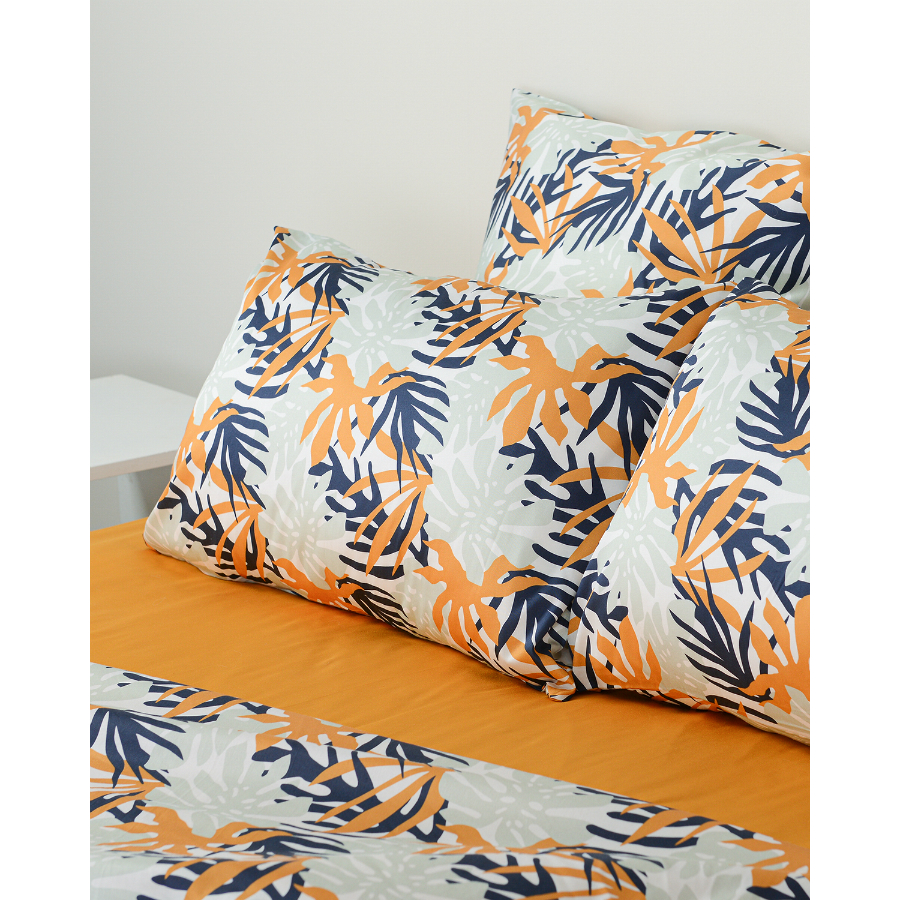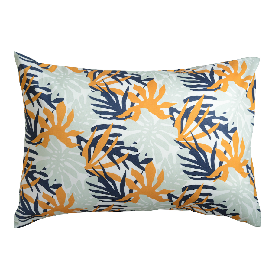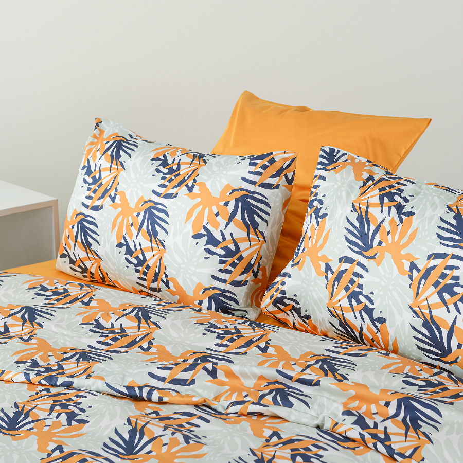 "Комплект наволочек с флористическим принтом Leaves станет ярким акцентом в вашей спальне. Гладкий, приятный на ощупь материал плотностью 210 ТС отличается особым способом пряжи – нити переплетаются в скрученном виде, что придает ткани дополнительную прочность.