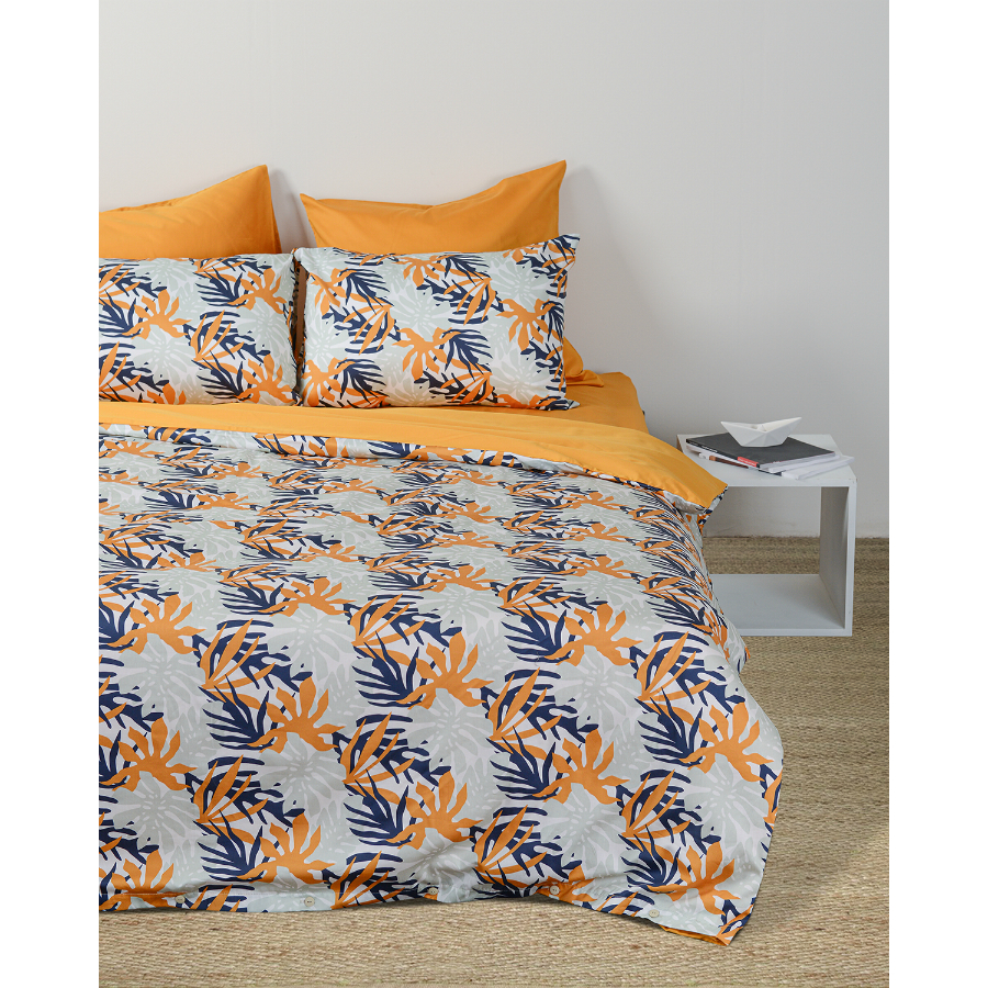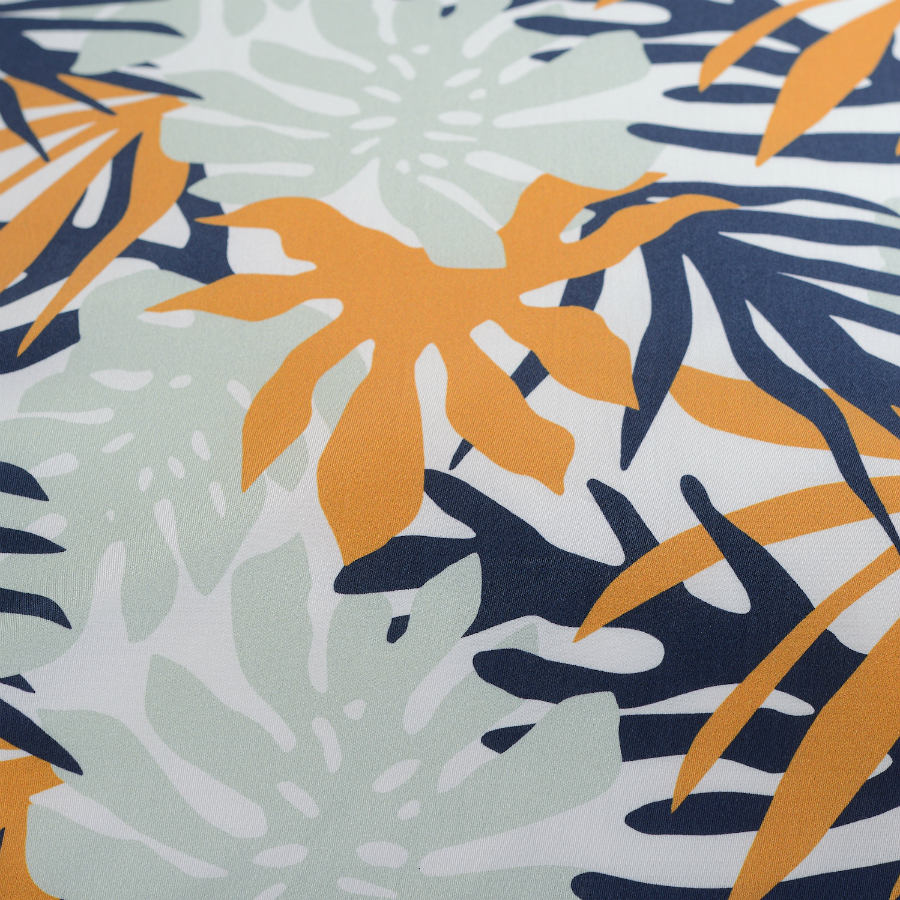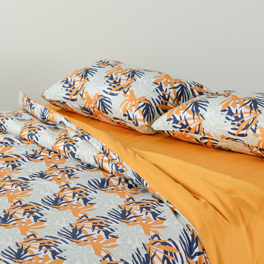 "Комплект наволочек с флористическим принтом Leaves станет ярким акцентом в вашей спальне. Гладкий, приятный на ощупь материал плотностью 210 ТС отличается особым способом пряжи – нити переплетаются в скрученном виде, что придает ткани дополнительную прочность.