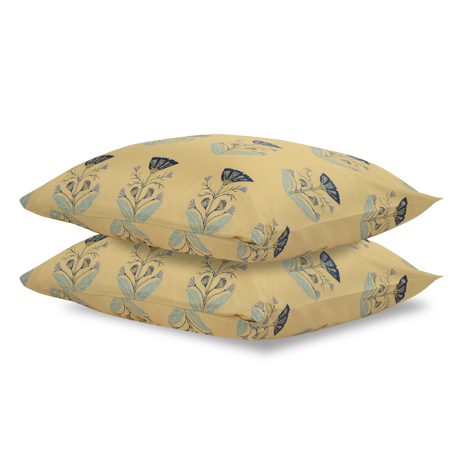 "Набор из двух наволочек из сатина с принтом ",Летний цветок", коллекции Essential – отличный вариант для тех, кто любит теплые оттенки и природные мотивы в интерьере. Гладкий, приятный на ощупь материал плотностью 210 TC отличается особым способом пряжи – нити переплетаются в скрученном виде, что придает ткани дополнительную прочность.