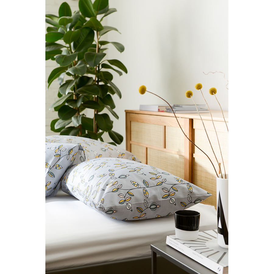 "Набор из двух наволочек из сатина с растительным принтом ",Ягоды тайги", из коллекции Russian North добавит атмосферу природы русского севера в ваш интерьер. Гладкий, приятный на ощупь материал плотностью 210 TC отличается особым способом пряжи – нити переплетаются в скрученном виде, что придает ткани дополнительную прочность.