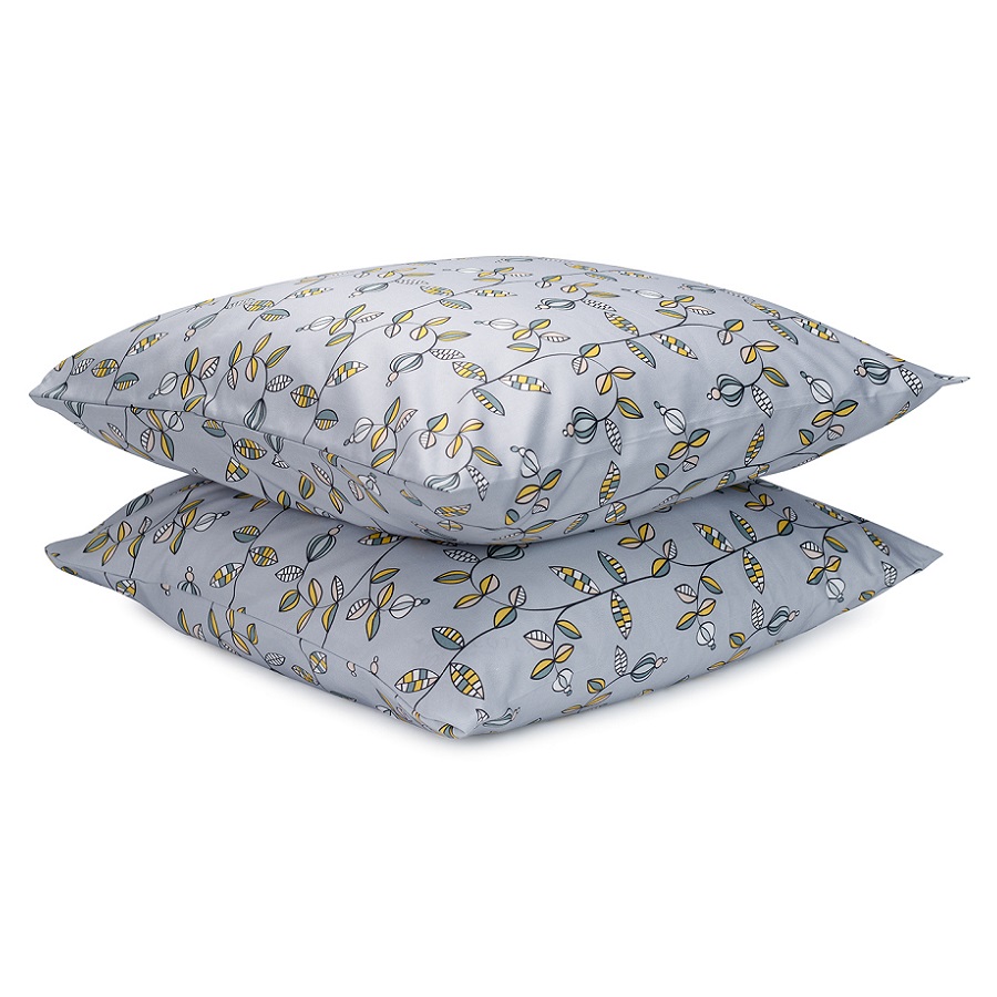 "Набор из двух наволочек из сатина с растительным принтом ",Ягоды тайги", из коллекции Russian North добавит атмосферу природы русского севера в ваш интерьер. Гладкий, приятный на ощупь материал плотностью 210 TC отличается особым способом пряжи – нити переплетаются в скрученном виде, что придает ткани дополнительную прочность.