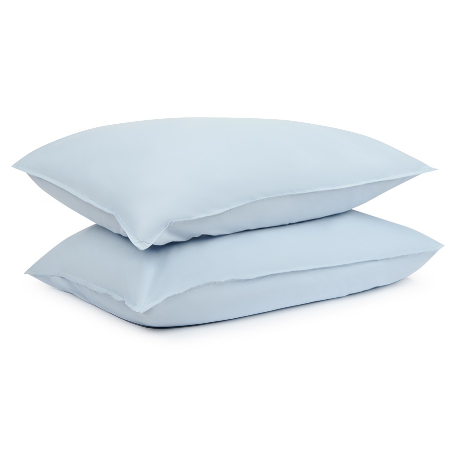 "Набор из двух наволочек небесно-голубого цвета из органического стираного хлопка из коллекции Essential дополнит подходящий по стилю и цветовой гамме комплект постельного белья и станет стильным акцентом в интерьере спальни. Стираный перкаль — красивый материал, который отличается мягкостью. Он получается особым способом пряжи – нити переплетаются крест на крест, что придает ткани дополнительную прочность. Перкаль создает ощущение прохлады в летнюю жару и сохраняет тепло зимними ночами. Он не деформируется, не линяет, и на нем не образуются катышки. Подходит для повседневного использования.
