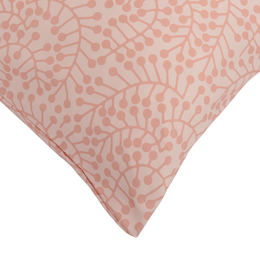 "Набор из двух наволочек розового цвета с принтом Спелая смородина из коллекции Scandinavian touch станет ярким акцентом в интерьере любой спальни. Дизайн со стилизованными ягодами смородины и округлыми линиями веточек, разработанный одним из ведущих финских дизайнерских агентств, впишется в любой современный интерьер. Сатин плотностью 210 ТС приятен на ощупь, обладает естественным блеском и не теряет внешний вид даже после множества стирок. В наборе 2 наволочки с системой закрытия клапан.