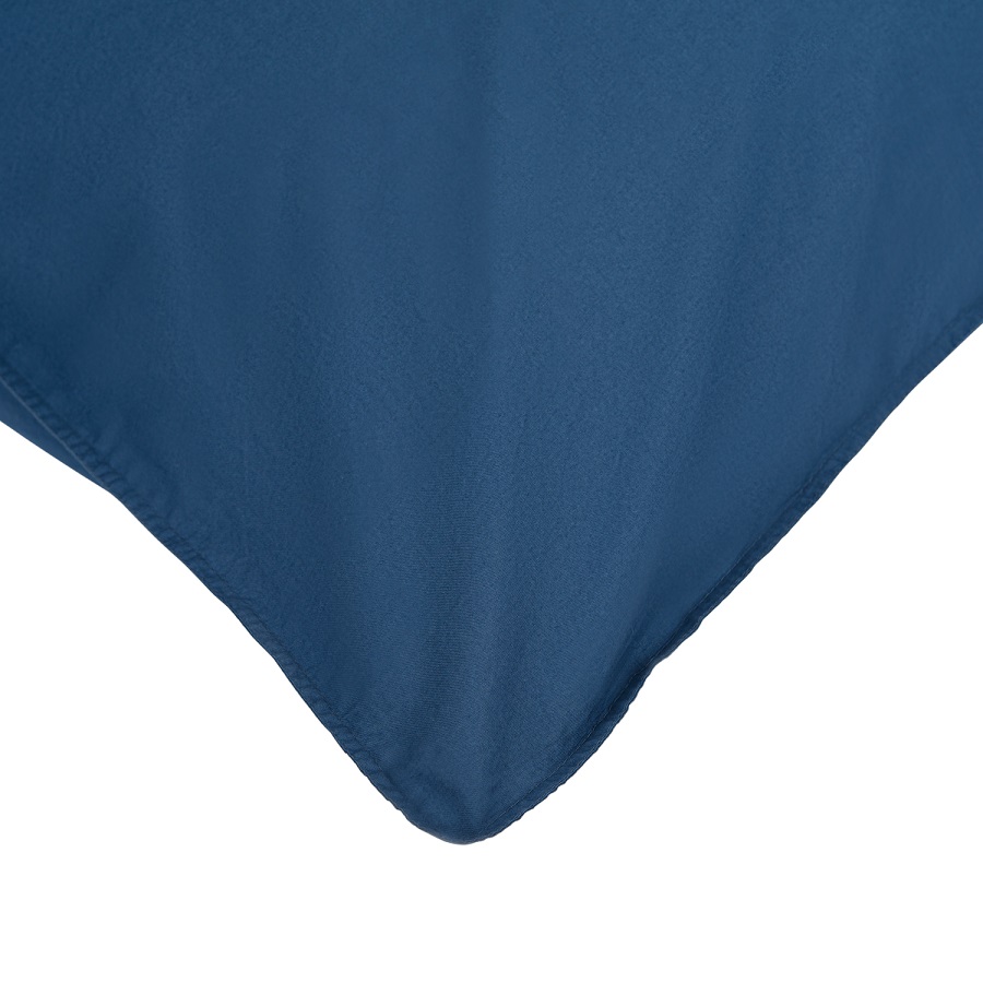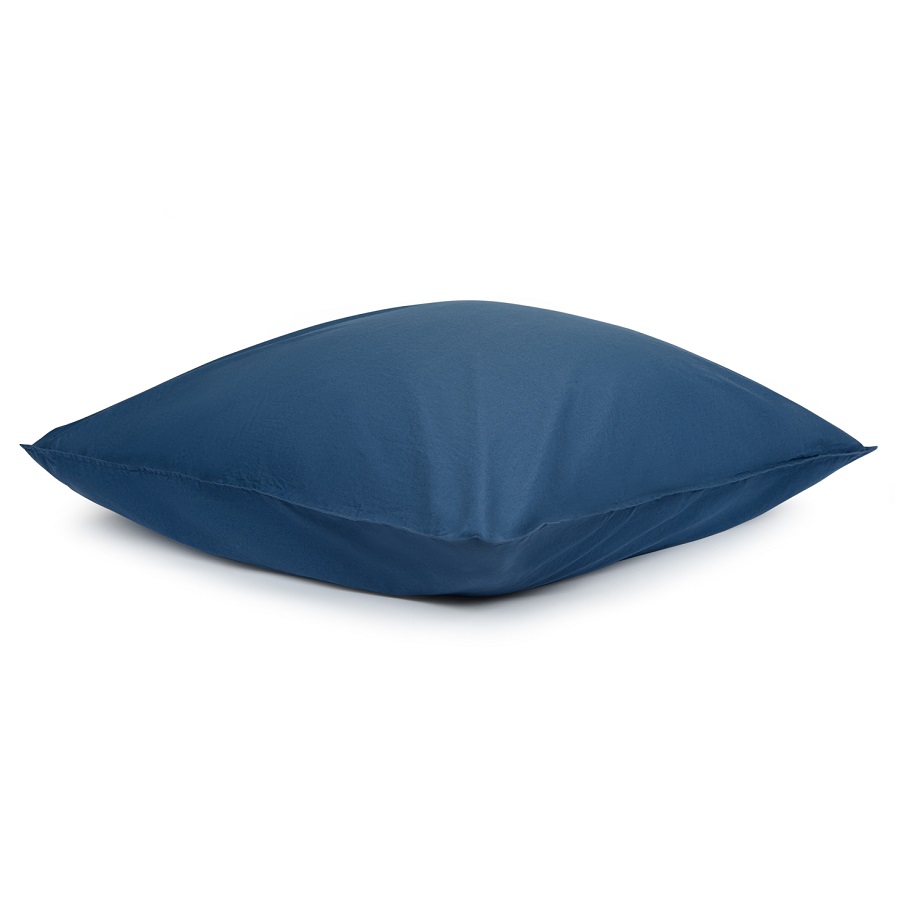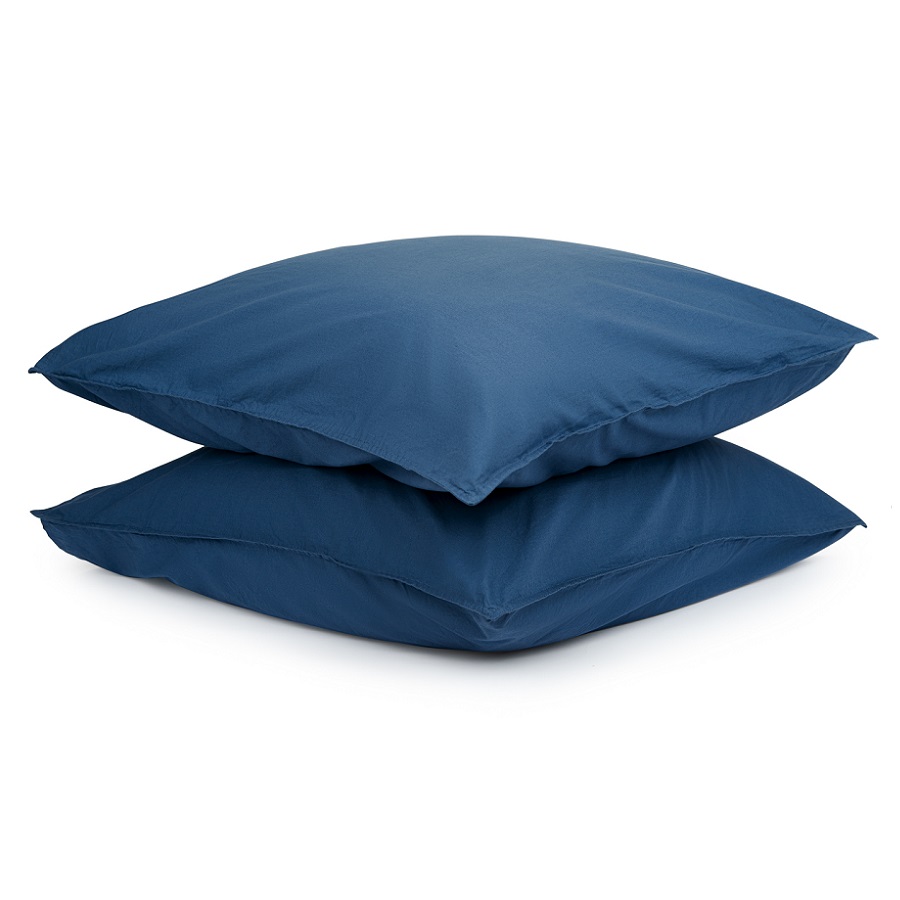 "Набор из двух наволочек темно-синего цвета из органического стираного хлопка из коллекции Essential дополнит подходящий по стилю и цветовой гамме комплект постельного белья и станет стильным акцентом в интерьере спальни. Стираный перкаль — красивый материал, который отличается мягкостью. Он получается особым способом пряжи – нити переплетаются крест на крест, что придает ткани дополнительную прочность. Перкаль создает ощущение прохлады в летнюю жару и сохраняет тепло зимними ночами. Он не деформируется, не линяет, и на нем не образуются катышки. Подходит для повседневного использования.