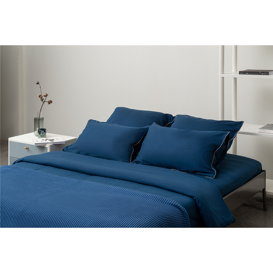 "Набор из двух наволочек темно-синего цвета с контрастным кантом из коллекции Essential дополнит постельное белье базовых оттенков. В составе материала хлопок и тенсель (,эвкалиптовое волокно),. Хлопок придает изделию легкость и отличные гигроскопические свойства. Благодаря тенселю ткань обладает бактерицидными свойствами и повышенной прочностью, меньше мнется и очень приятна к телу, напоминая одновременно шерсть и лен, поскольку сохраняет тепло и дает ощущение прохлады. Тенсель относится к экологически чистым волокнам, его производство не загрязняет окружающую среду.