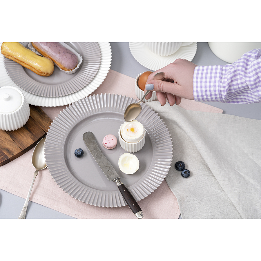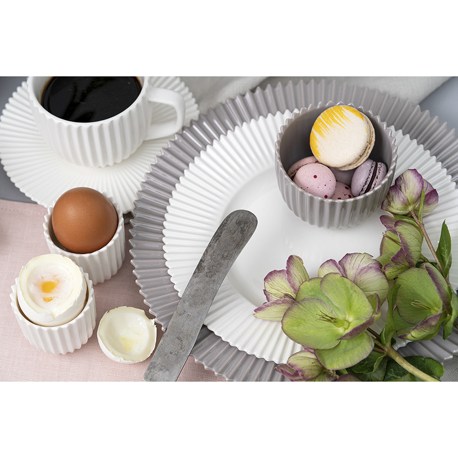 "Изящные белые подставки для яиц наверняка понравятся тем, кто считает завтрак самым главным приемом пищи и хочет, чтобы он был безупречным даже в будний день. Подставки изготовлены из фарфора и имеют рифленую поверхность c оригинальным зубчатым краем — это фирменная черта коллекции Edge. В набор входят две подставки, которые при желании можно дополнить чашками и тарелками с таким же дизайном.