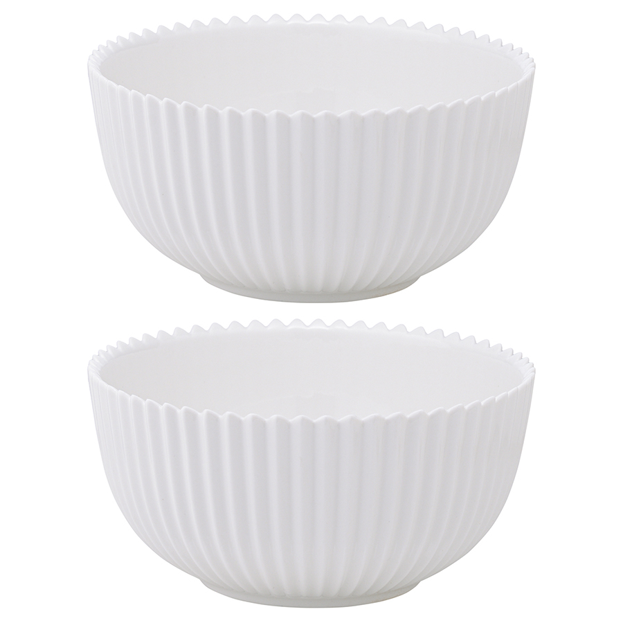 "В набор входят два больших салатника из белоснежного фарфора. В них можно подавать самые разные блюда — закуски, фрукты, десерты и многое другое. Глянцевая поверхность салатников имеет рифленую фактуру и красиво отражает свет, что добавляет сервировке легкость и утонченность. При этом за фарфором, из которого сделана посуда, очень просто ухаживать: он не царапается, не меняет цвет и легко моется. Салатники можно комбинировать с другими предметами из коллекции Edge — например, тарелками, чашками или вазами.