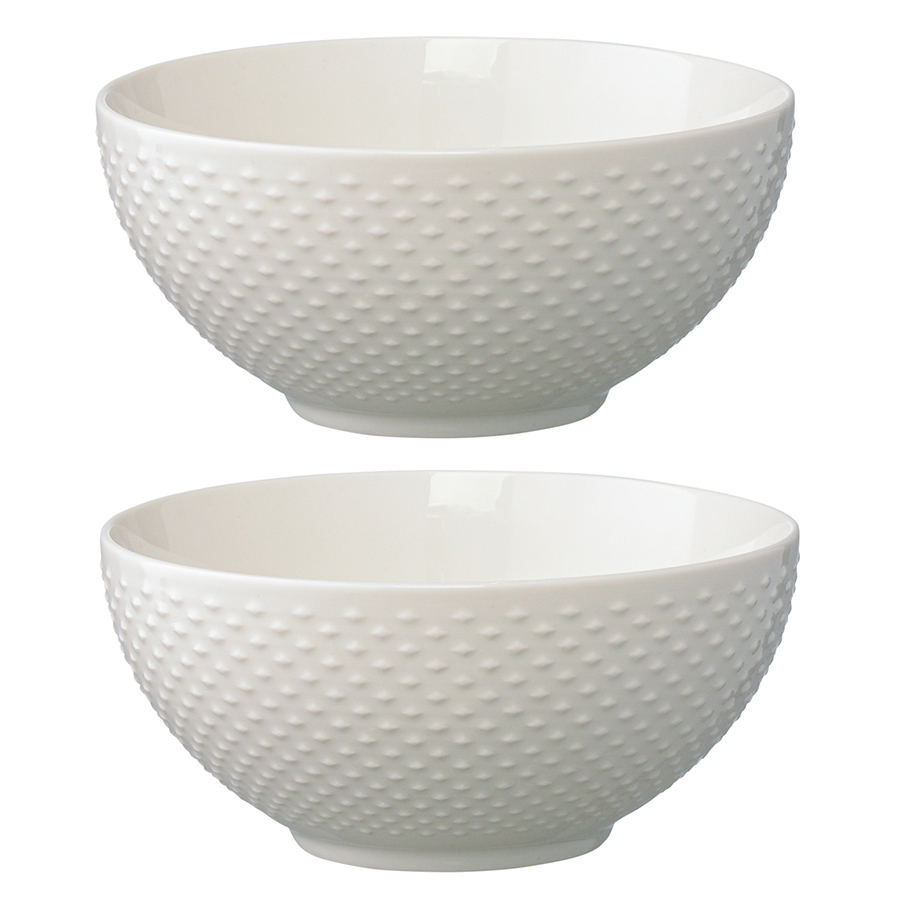 "Набор из двух салатников белого цвета с фактурным рисунком из коллекции Essential непременно понравится поклонникам классического и английского стилей. Равномерный и тактильно приятный фактурный декор в сочетании с глянцевой глазурью украсят сервировку. Изделия выполнены из фарфора – экологичного и практичного материала, простого в уходе, устойчивого к сколам и перепадам температуры.