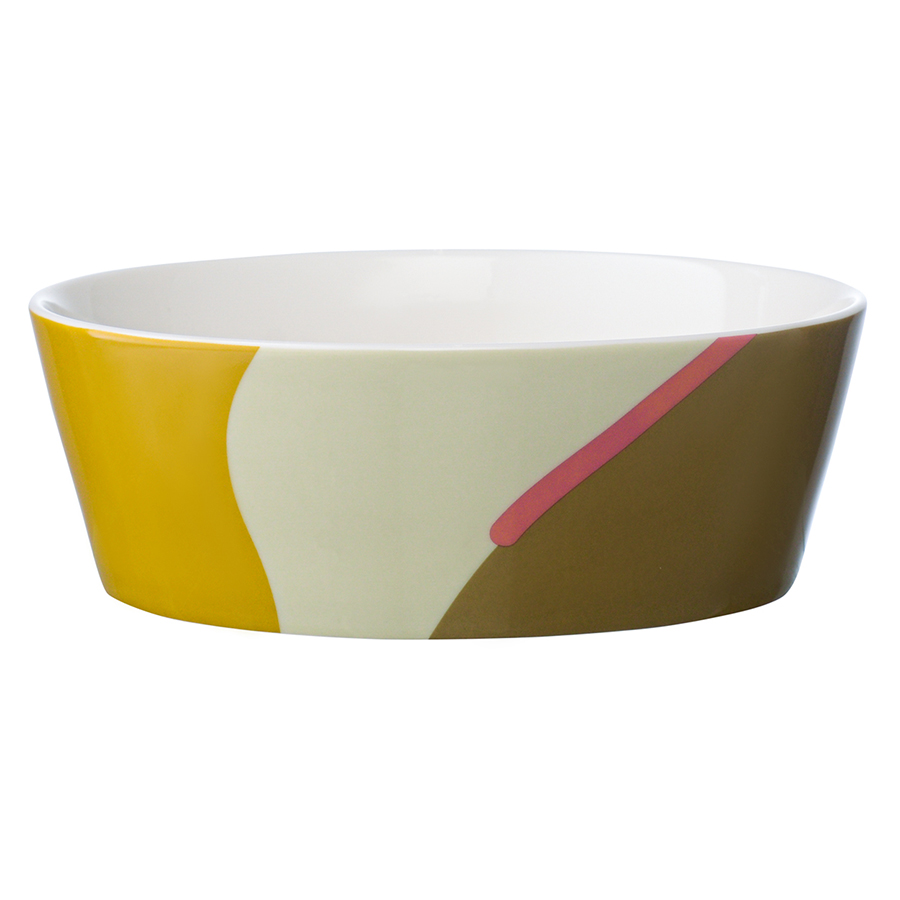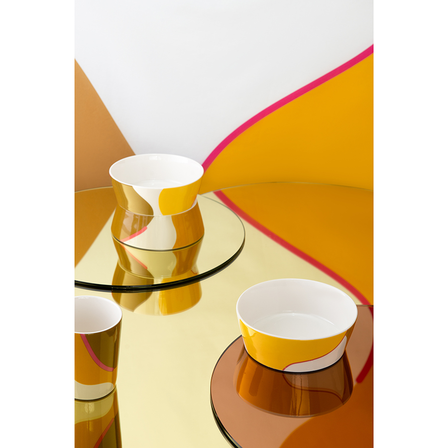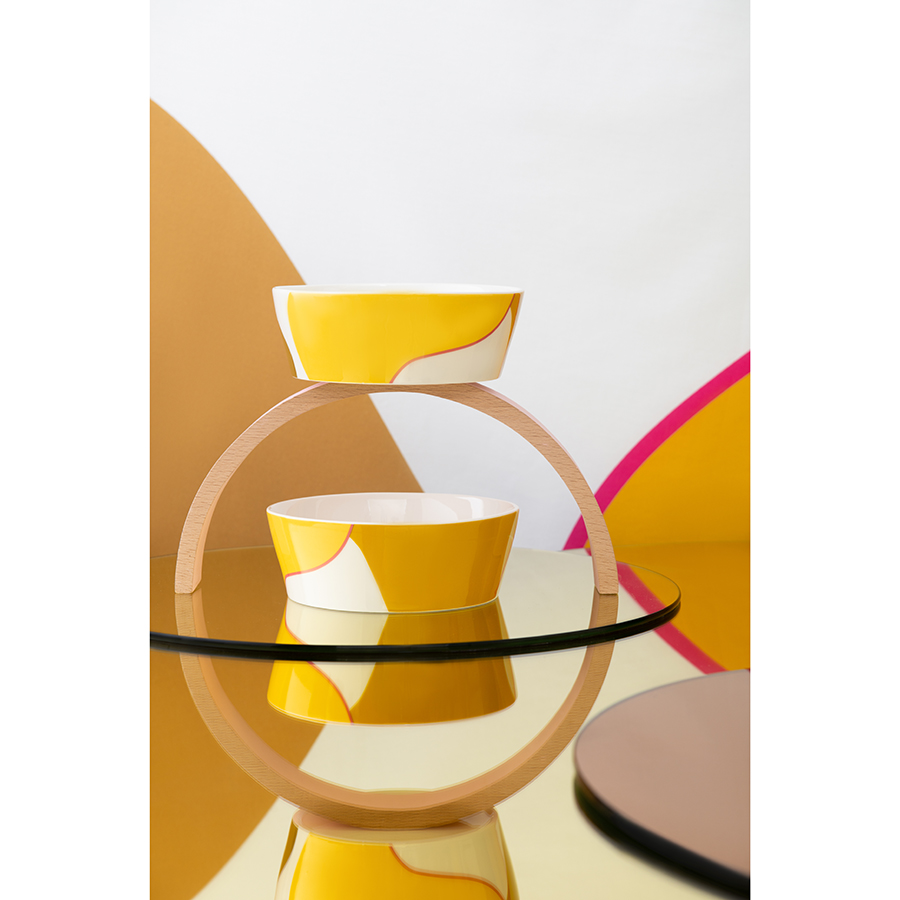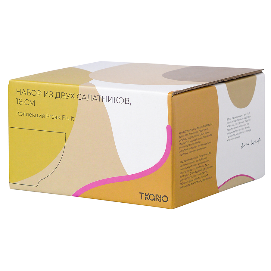 "Набор из двух салатников горчичного цвета с авторским принтом из коллекции Freak Fruit прекрасно подходит для подачи блюд. Оригинальный дизайн в духе абстракционизма сделает теплее атмосферу за столом. Принт на каждом изделии не имеет повторяющегося раппорта и представляет собой единую законченную картину.