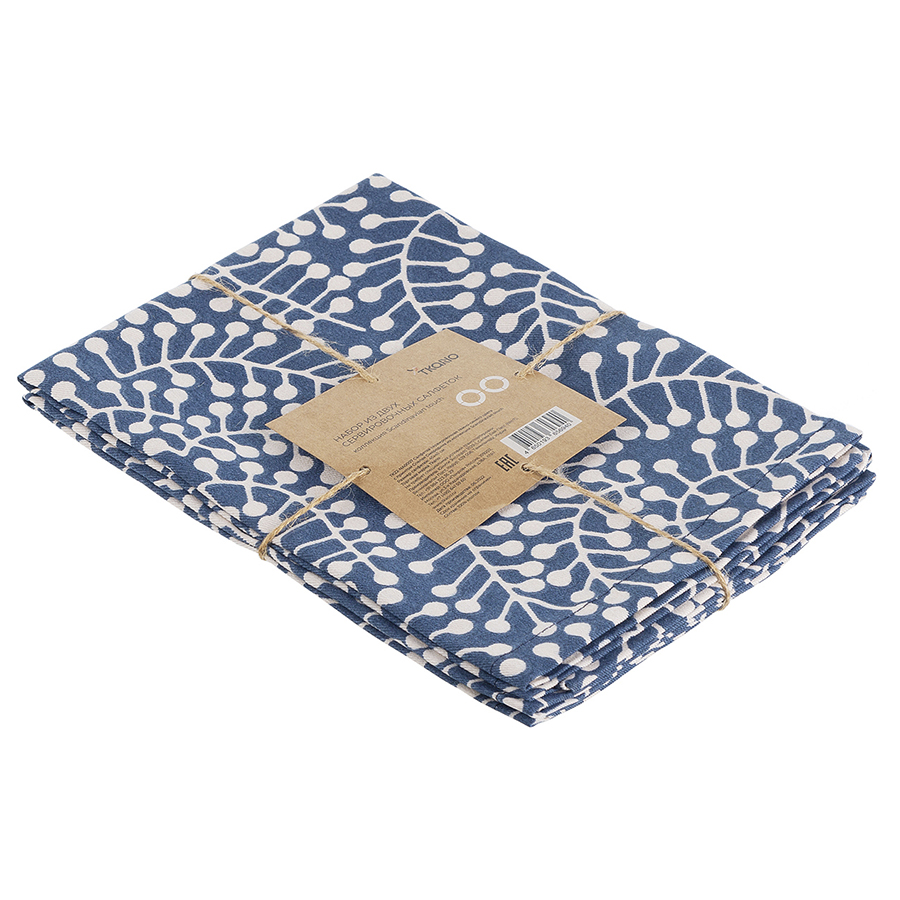 "Набор из двух салфеток сервировочных темно-синего цвета с принтом Спелая Смородина из коллекции Scandinavian touch внесет разнообразие в повседневную и неформальную праздничную сервировку. Салфетки с авторским дизайном, разработанным одним из ведущих финских агентств, будут хорошо сочетаться со столовым текстилем из этой же коллекции и органично впишутся в любой современный интерьер. Модель выполнена из плотного хлопка, хорошо впитывает влагу и не деформируется после множества стирок.