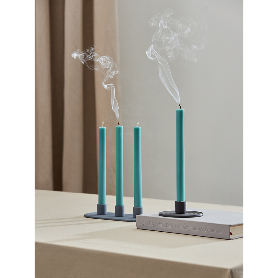 "Свечи бирюзового цвета из коллекции Edge отлично подойдут в качестве декора и для создания особой атмосферы в интерьере. Их дизайн с фактурными гранями сочетает в себе классику и современные мотивы, отражая прочную связь между прошлым и настоящим. Эти свечи станут не только источником мягкого света, но и выразительным акцентом, способным придать любому пространству характер и индивидуальность.
