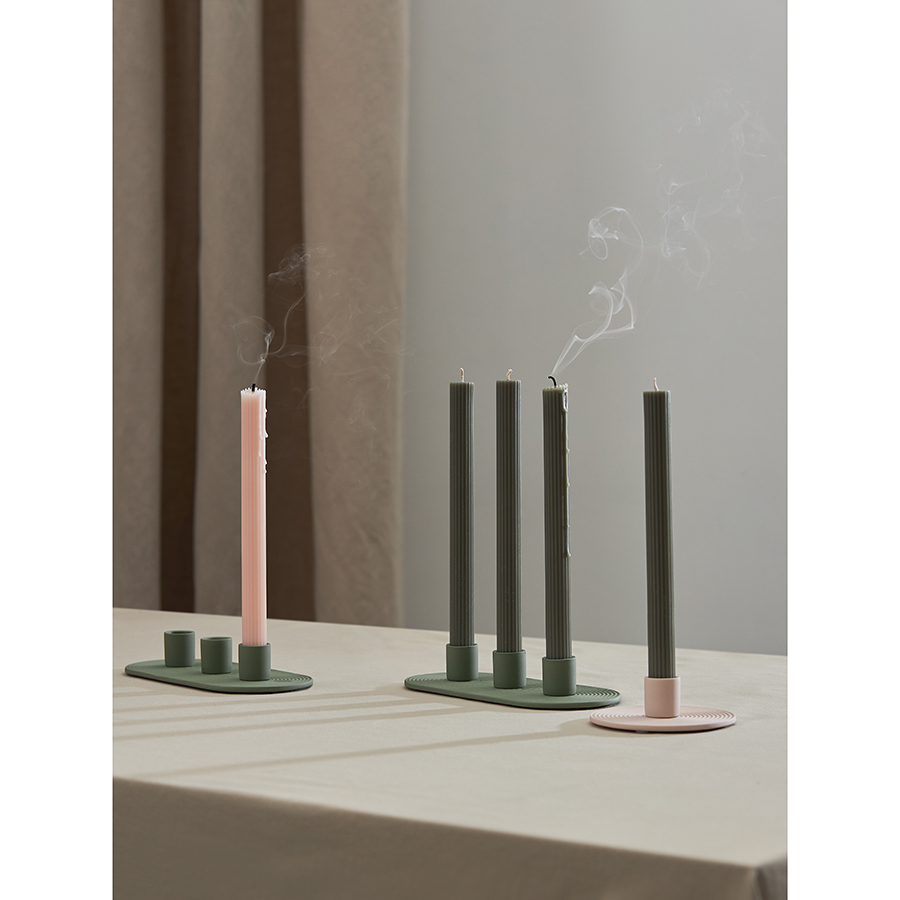 "Свечи цвета шалфея из коллекции Edge отлично подойдут в качестве декора и для создания особой атмосферы в интерьере. Их дизайн с фактурными гранями сочетает в себе классику и современные мотивы, отражая прочную связь между прошлым и настоящим. Эти свечи станут не только источником мягкого света, но и выразительным акцентом, способным придать любому пространству характер и индивидуальность.