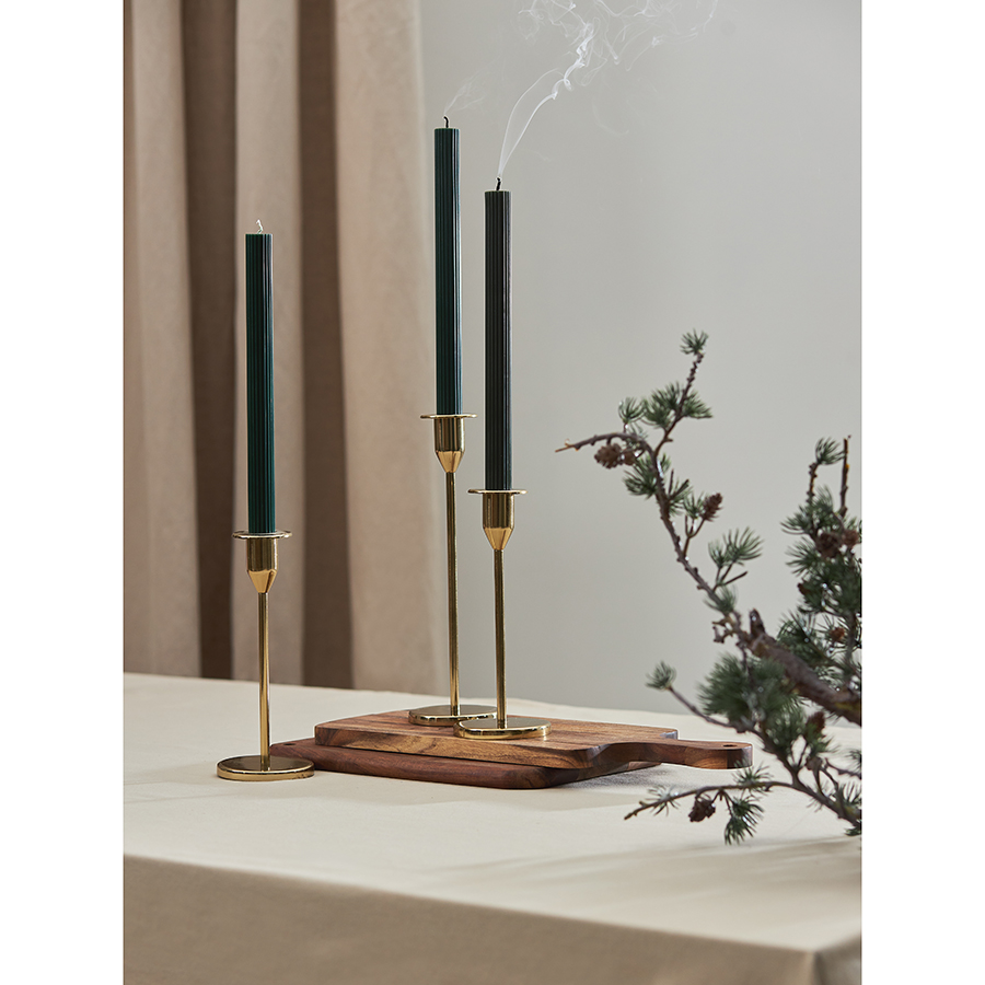 "Свечи темно-зеленого цвета из коллекции Edge отлично подойдут в качестве декора и для создания особой атмосферы в интерьере. Их дизайн с фактурными гранями сочетает в себе классику и современные мотивы, отражая прочную связь между прошлым и настоящим. Эти свечи станут не только источником мягкого света, но и выразительным акцентом, способным придать любому пространству характер и индивидуальность.