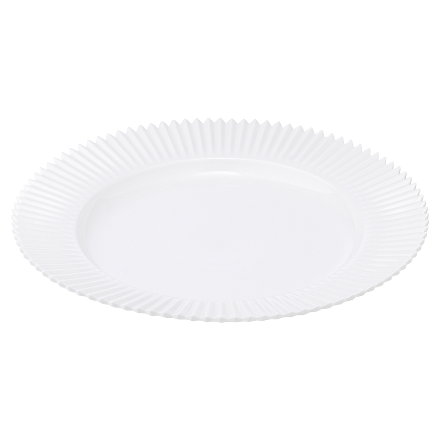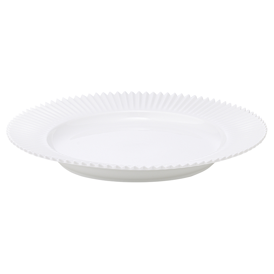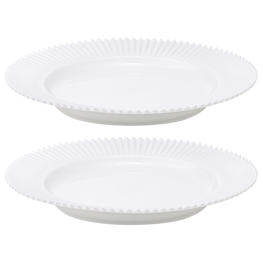 "Набор из двух больших тарелок белого цвета подойдет как для праздничной сервировки, так и для обычного приема пищи в будний день. Фарфоровые борта тарелок имеют рифленую поверхность и оригинальный зубчатый край, что добавляет дизайну утонченность и изящество. При этом они достаточно прочны, чтобы выдерживать мытье в посудомоечной машине, так что ухаживать за ними будет очень просто. С этими тарелками можно составить целый сервиз, добавив к ним другую посуду из серии Edge — например, чашки и салатники.