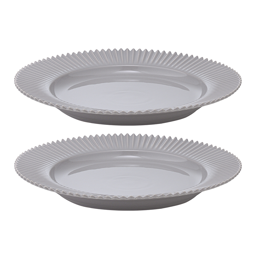 "Набор из двух десертных тарелок глубокого темно-серого цвета подойдет как для праздничной сервировки, так и для обычного завтрака в будний день. Фарфоровые борта тарелок имеют рифленую поверхность и оригинальный зубчатый край, что добавляет им утонченности и изящества. При этом они достаточно прочны, чтобы выдерживать мытье в посудомоечной машине, так что ухаживать за ними будет очень просто. С этими тарелками можно составить целый сервиз, добавив к ним другую посуду из серии Edge — например, чашки и салатники