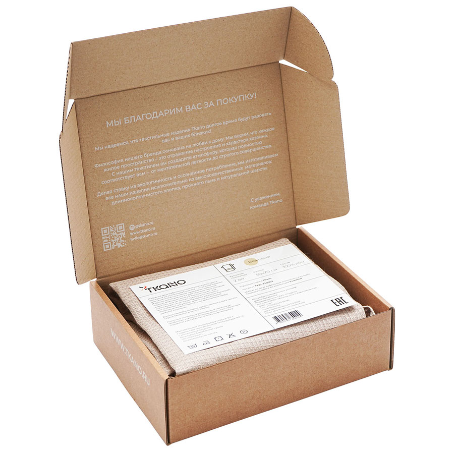 Кухонные полотенца упакованы в маленькую крафтовую коробку, поэтому могут стать приятным подарком как себе, так и близкому человеку.