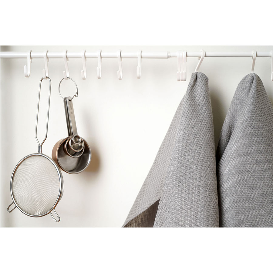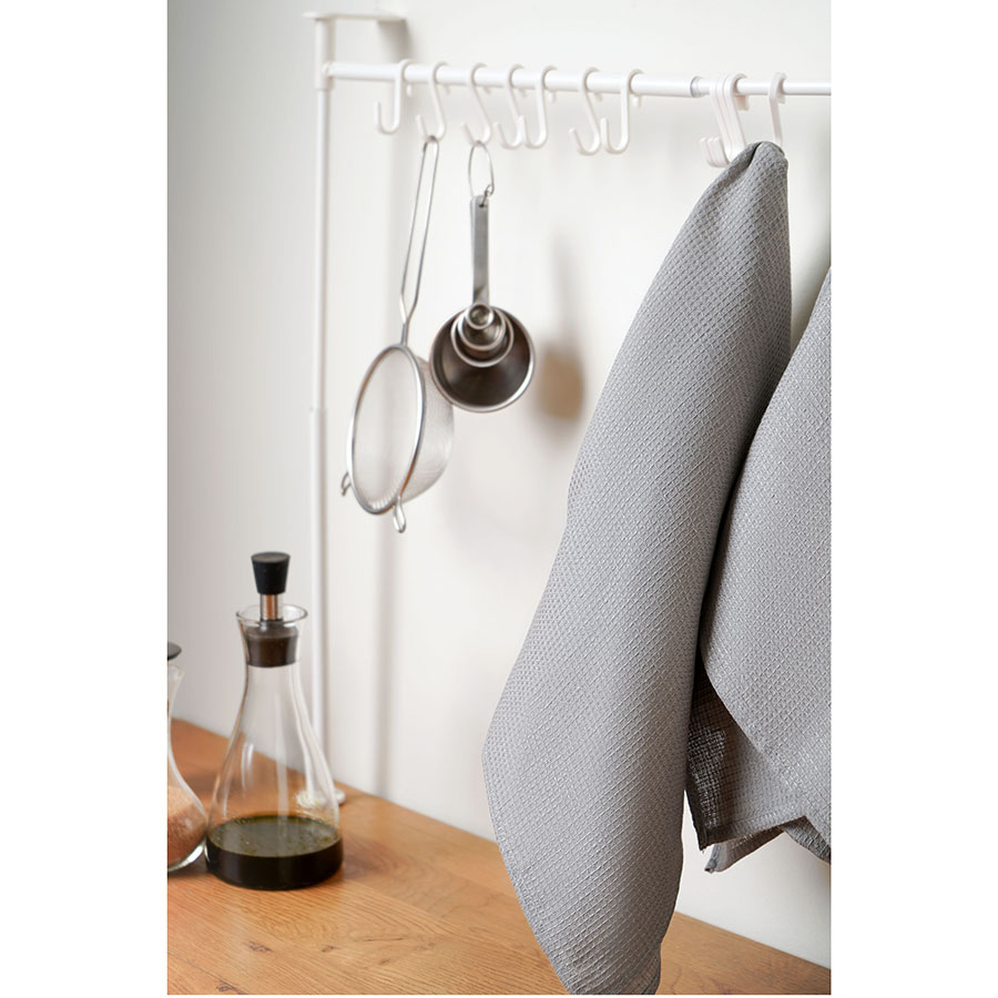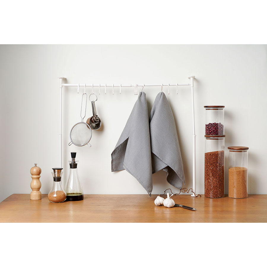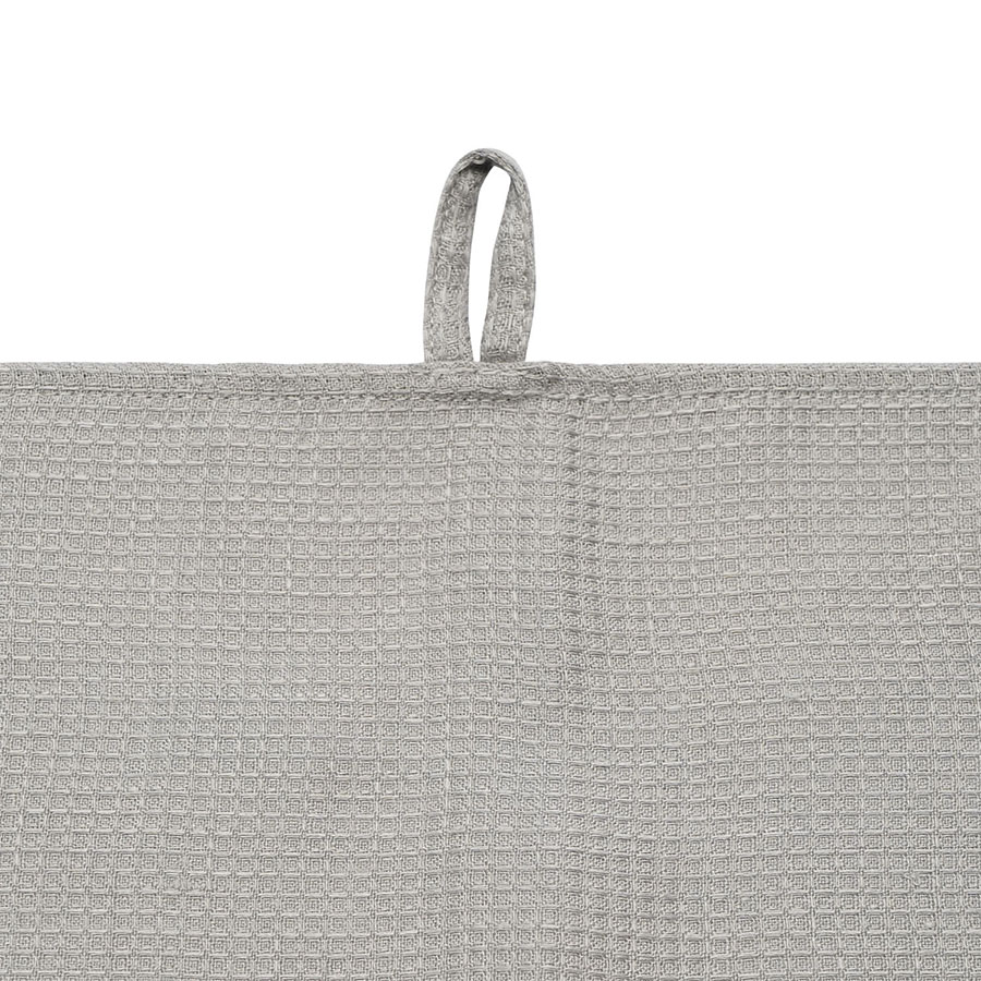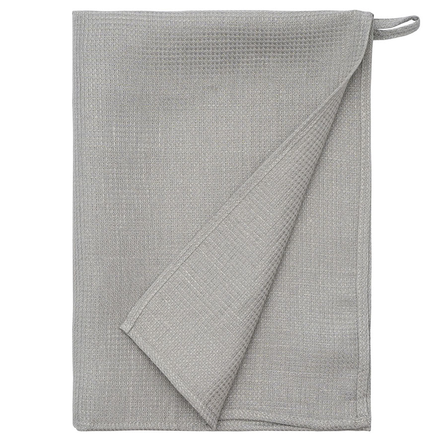 "Набор из двух вафельных полотенец серого цвета для кухни из коллекции Essential – отличный вариант для ценителей спокойных природных оттенков. Изделия изготовлены из умягченного льна, который хорошо впитывает влагу и быстро сохнет. Как известно, лен не только прекрасно смотрится в интерьере, но и предотвращает развитие бактерий, что особенно актуально для кухни и столовой. Полотенце можно повесить на крючок, благодаря удобной петельке.