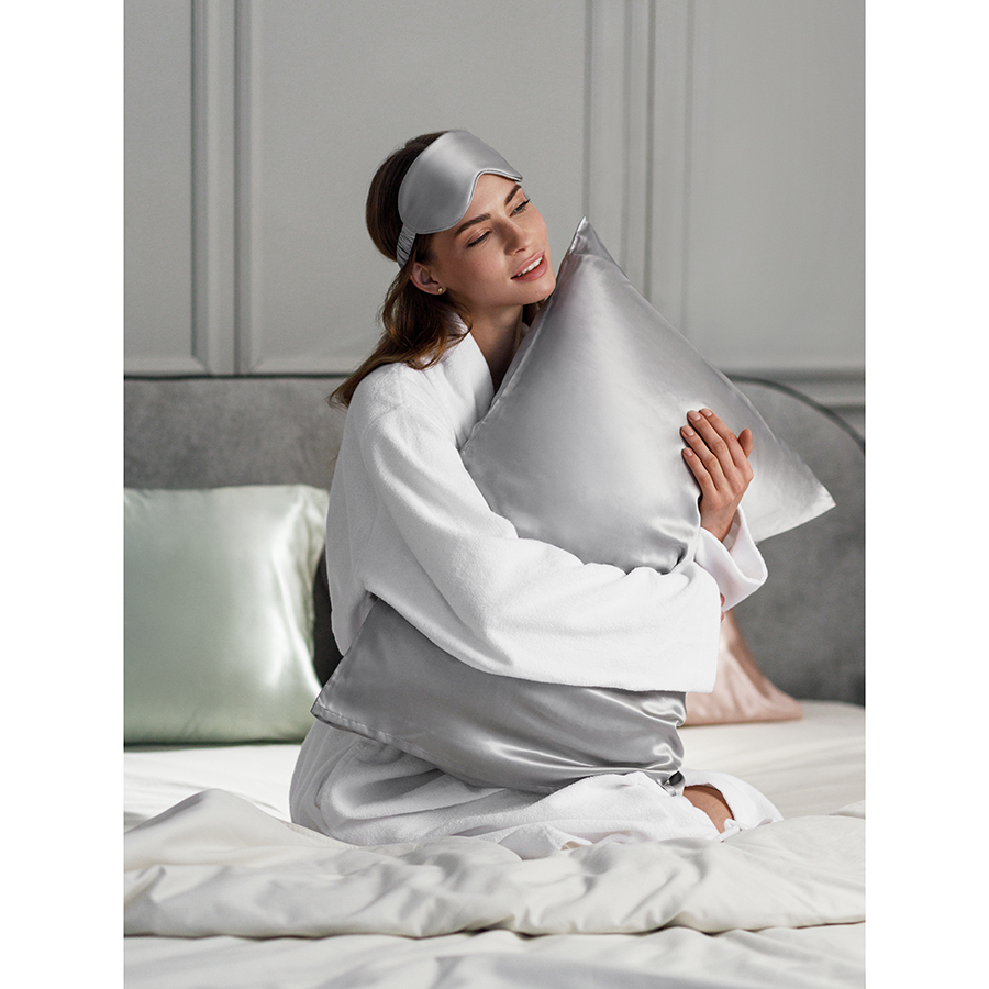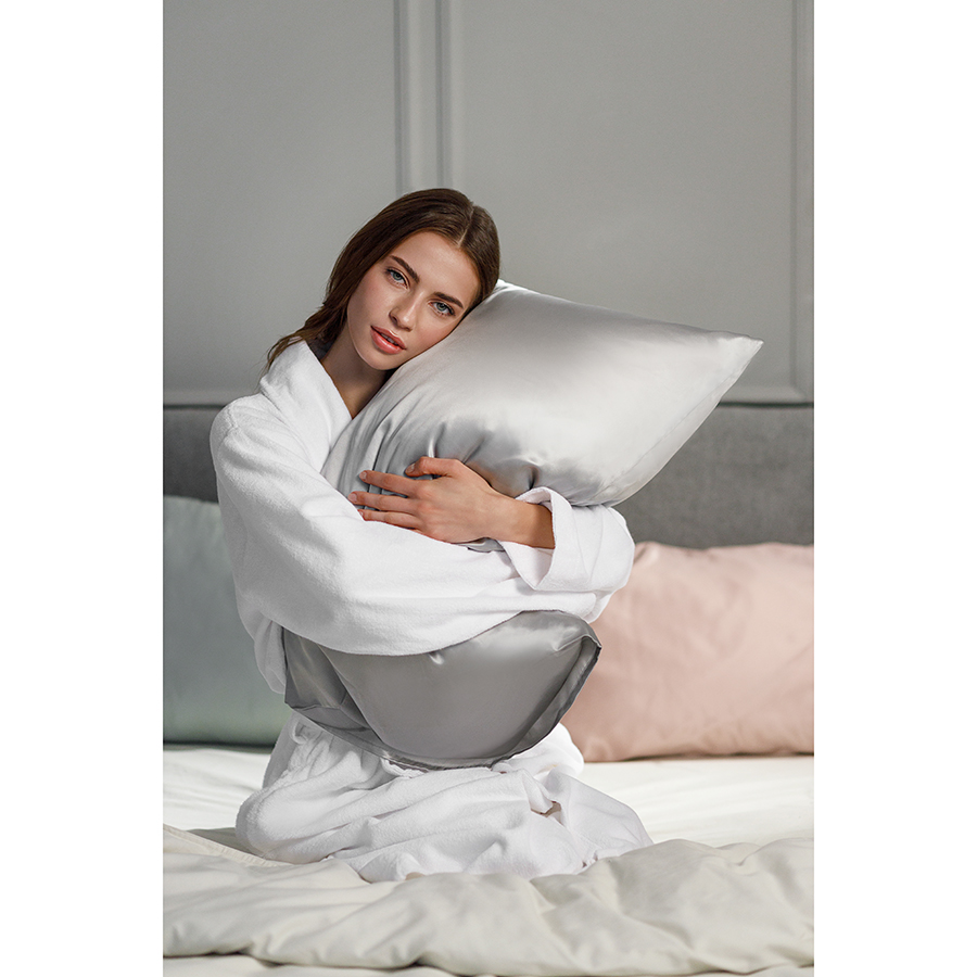 "Наволочка из натурального шелка светло-серого цвета из коллекции Essential украсит любую спальню и оставит ощущение нежности на вашей коже. Шелковая ткань меньше склонна к появлению заломов, что позволяет изделию сохранять эстетичный вид. Материал хорошо впитывает влагу и обеспечивает оптимальную воздухопроницаемость, создавая условия для комфортного и здорового сна. Его невероятно мягкая и гладкая фактура предотвращает появление морщин на лице и снижает риск образования спутанных узелков на волосах. Кроме того, шелк является гипоаллергенным, что делает его отличным выбором для людей с чувствительной кожей и аллергиями.
