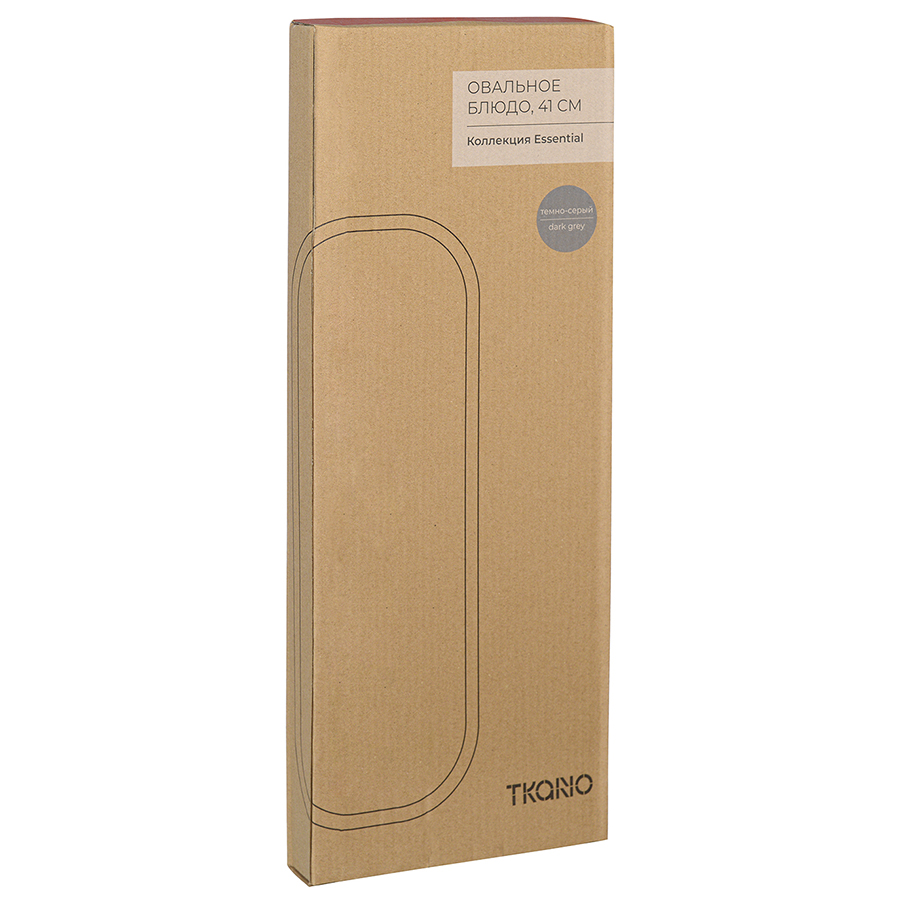 "Овальное фарфоровое блюдо — это по-настоящему универсальная вещь, которая пригодится на любой кухне. На нем можно подать закуски, красиво разложить фрукты или сервировать основное блюдо праздничного стола. Гладкая поверхность темно-серого цвета станет идеальным «фоном» для ваших кулинарных шедевров, а минималистичный скандинавский дизайн впишется в любой интерьер. Блюдо прекрасно сочетается с другой посудой из серии Essential и может стать частью стильного сервиза.
