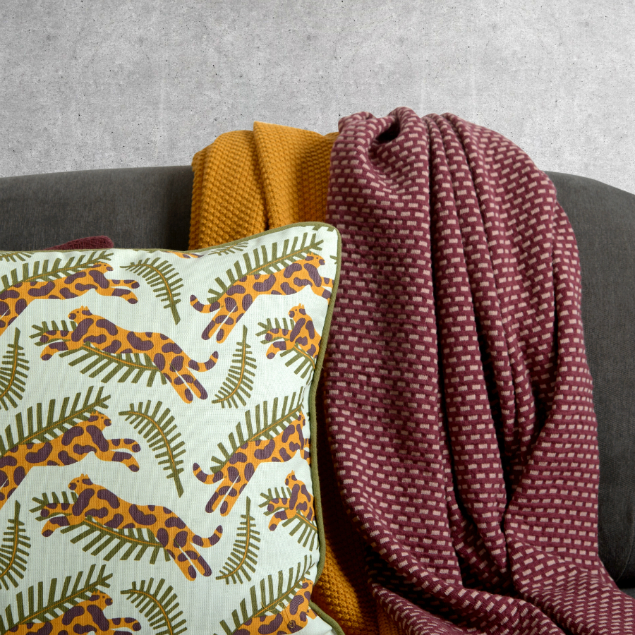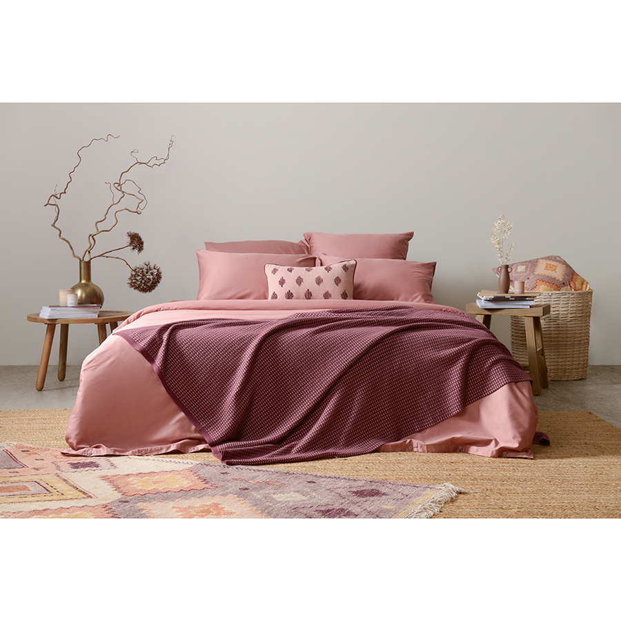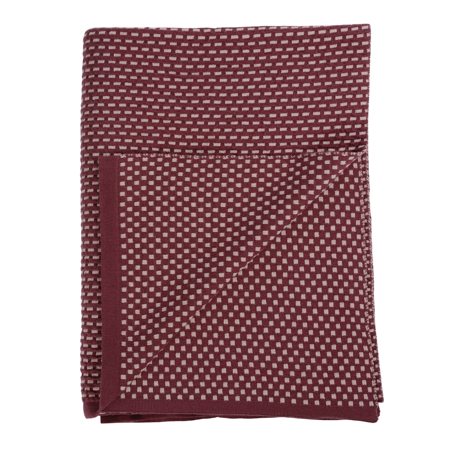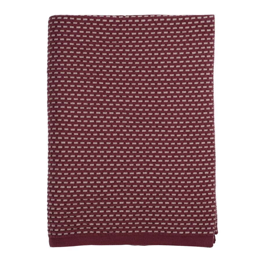 Плед из хлопка фактурной вязки бордового цвета из коллекции Essential, 130х180 см