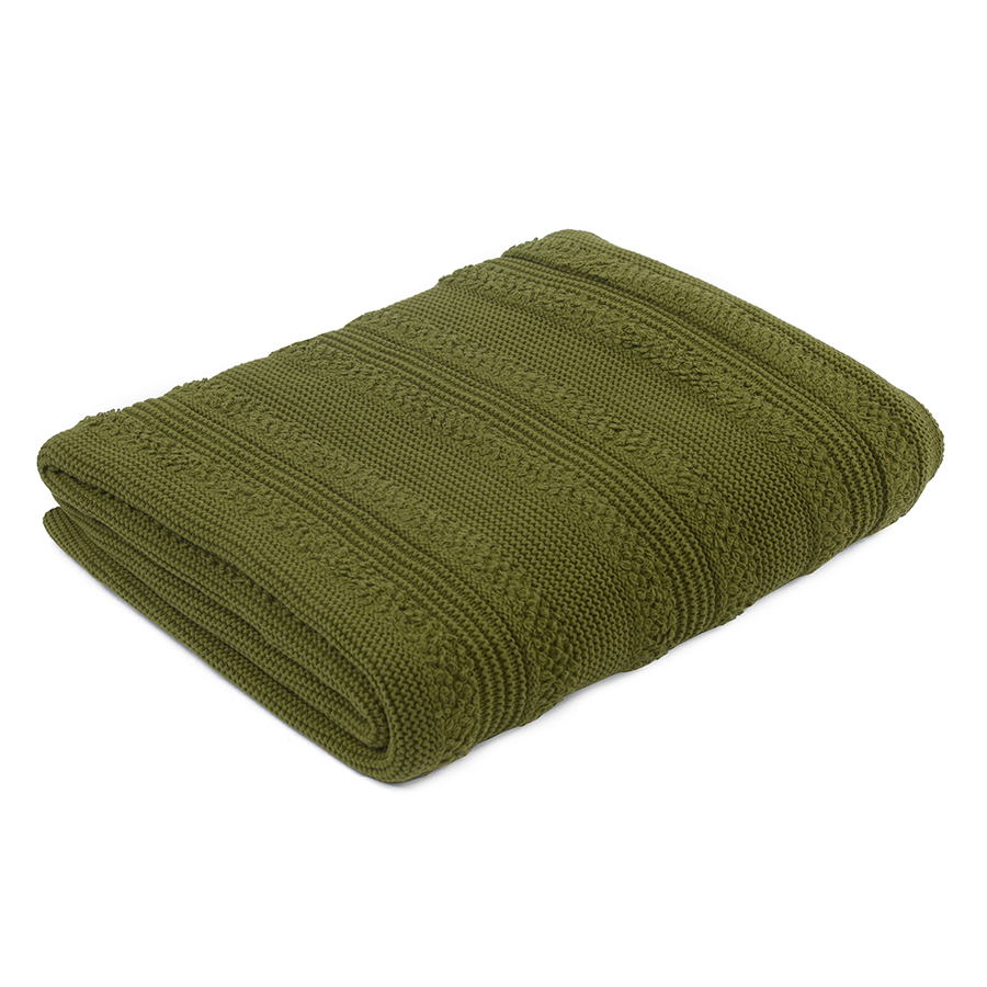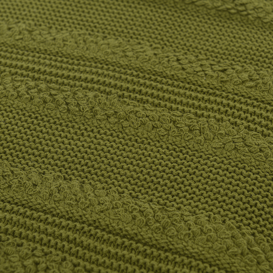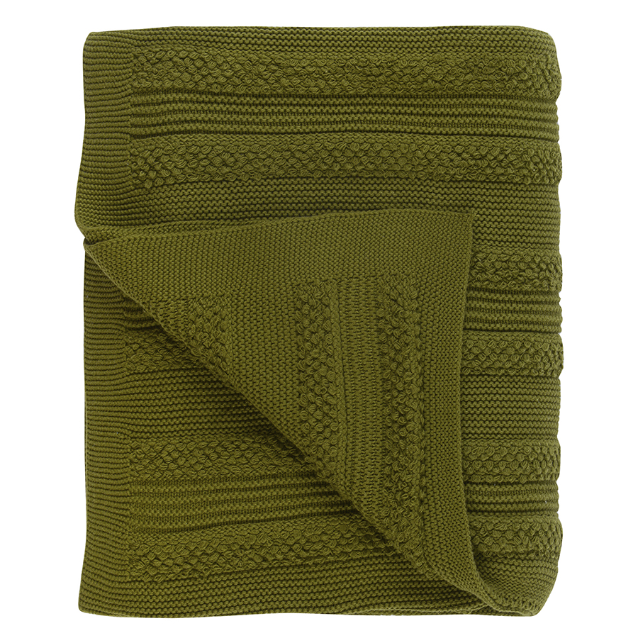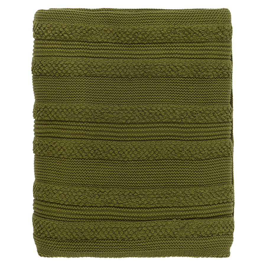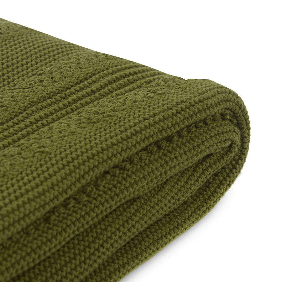 Плед из хлопка с буклированной вязкой оливкового цвета из коллекции Essential, 130х170 см