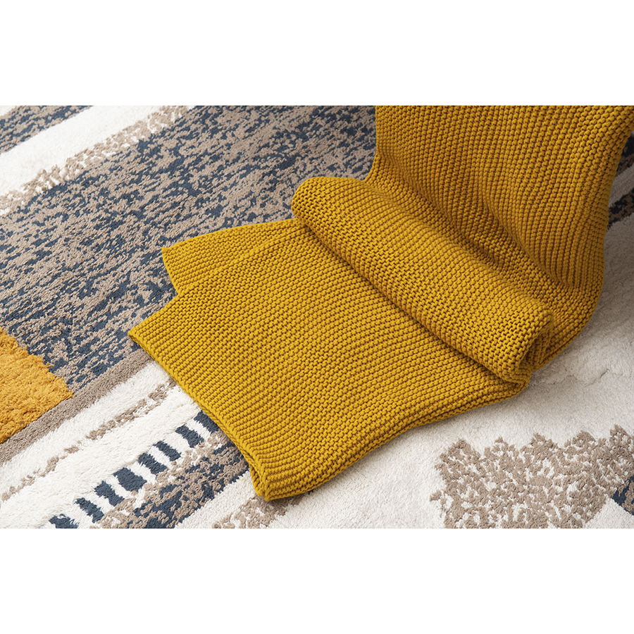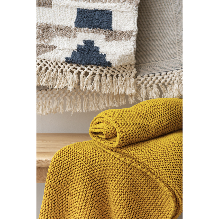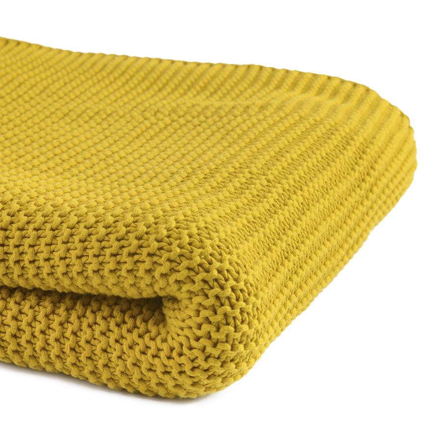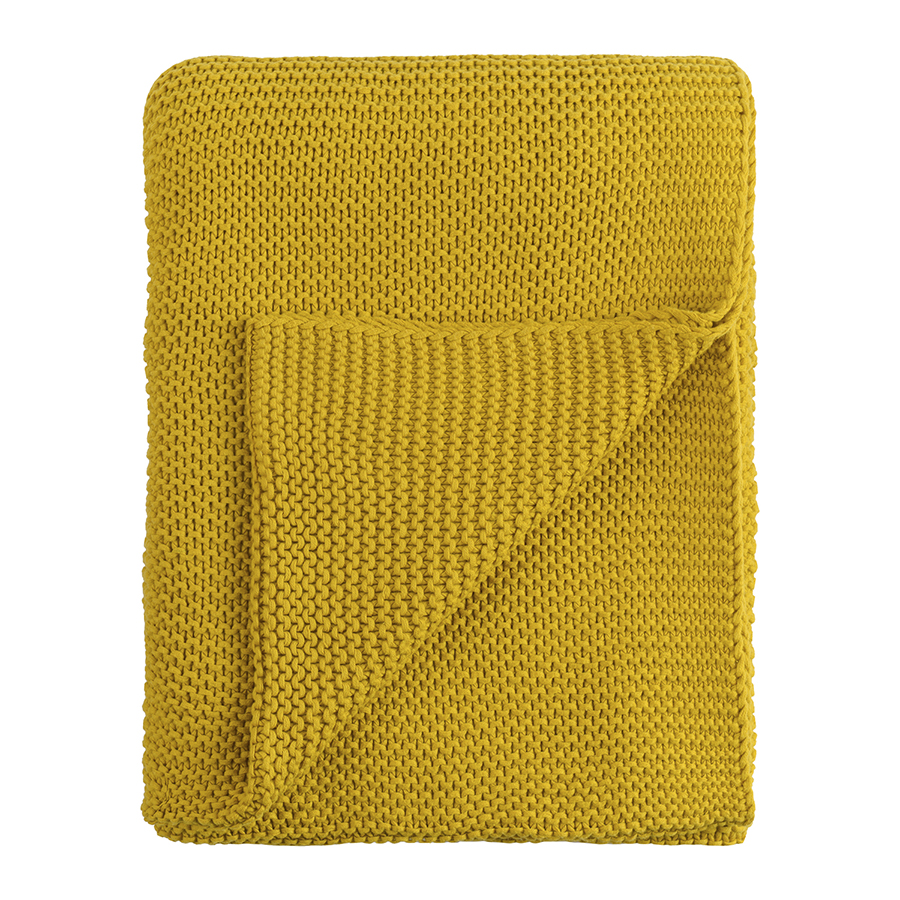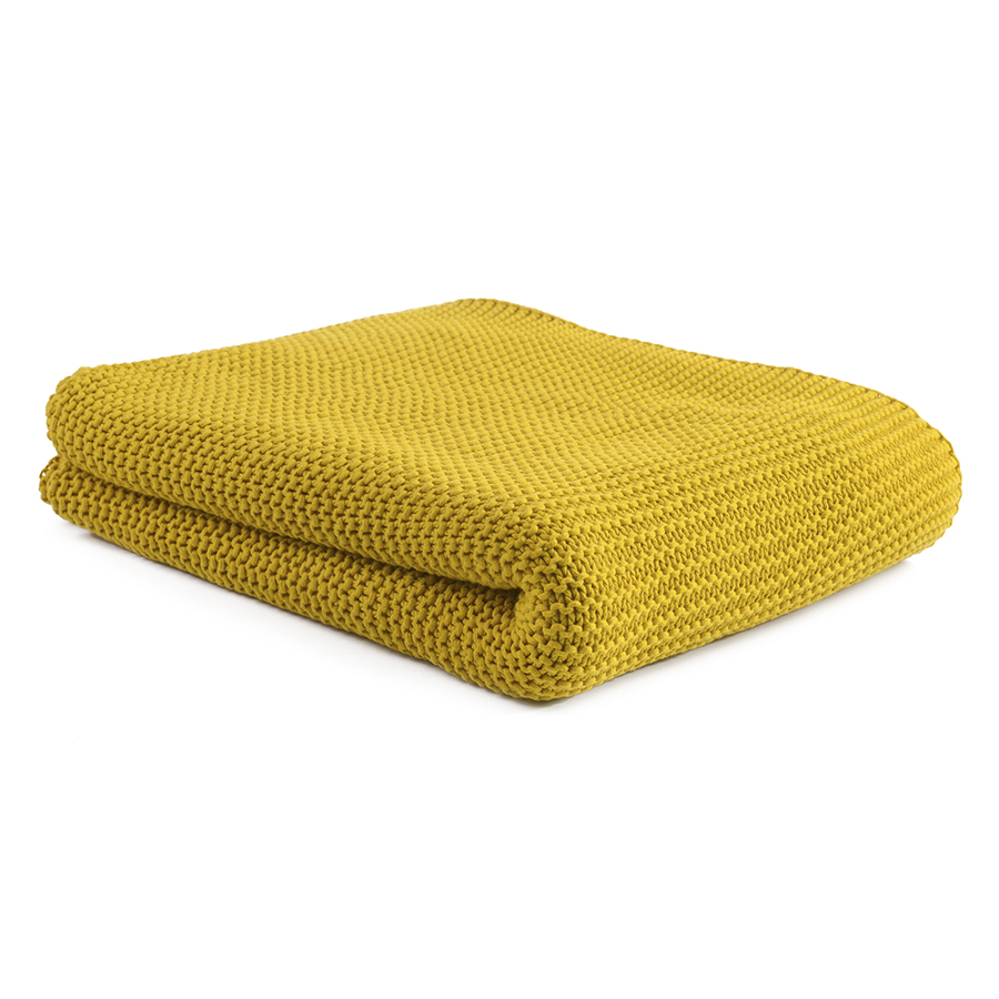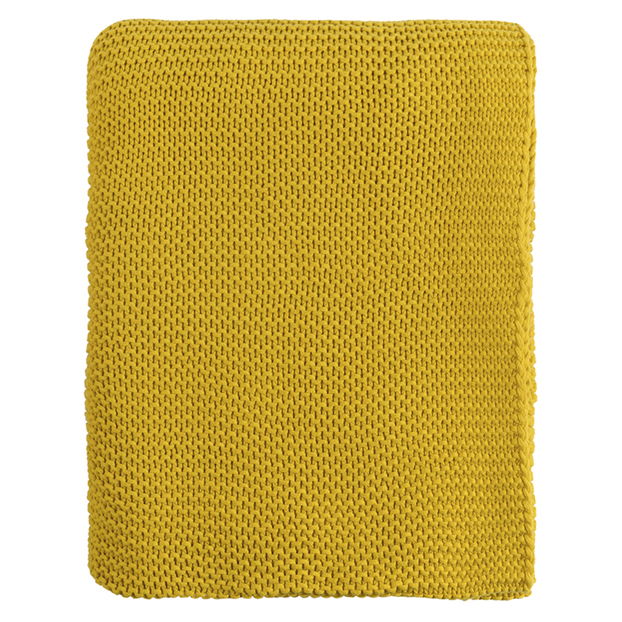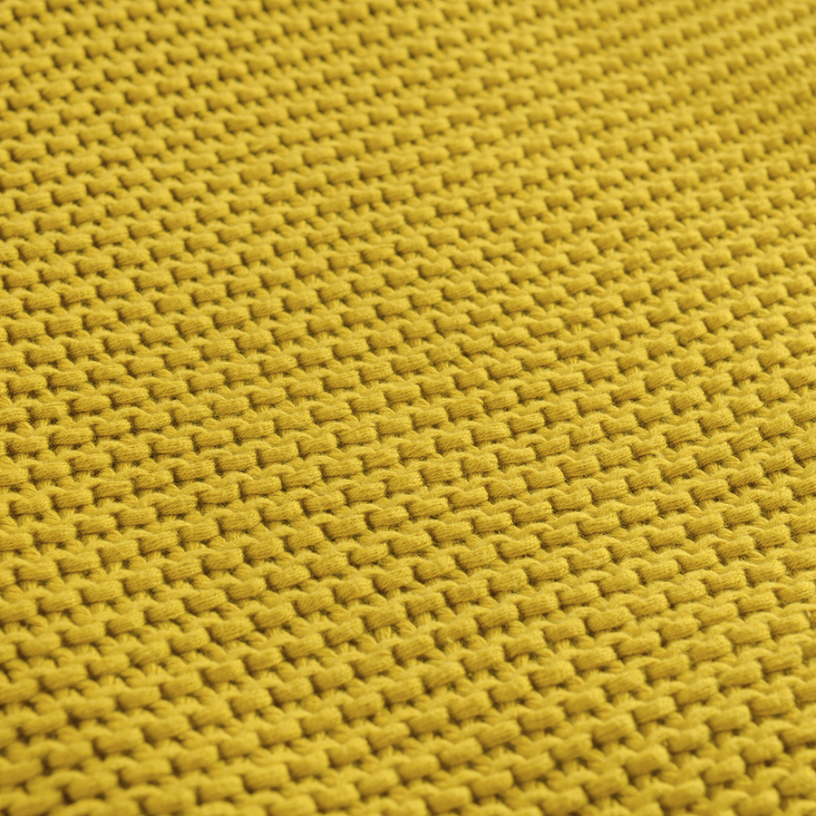 Плед из хлопка жемчужной вязки горчичного цвета из коллекции Essential, 130х180 см
