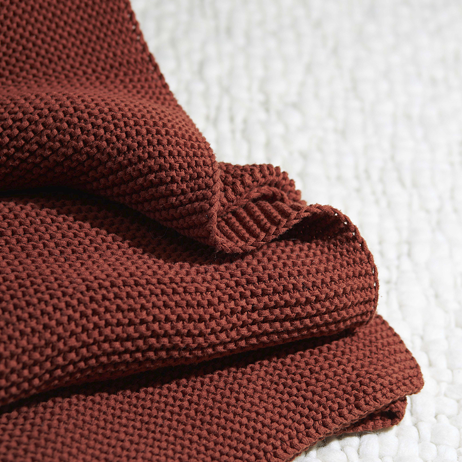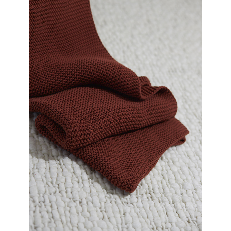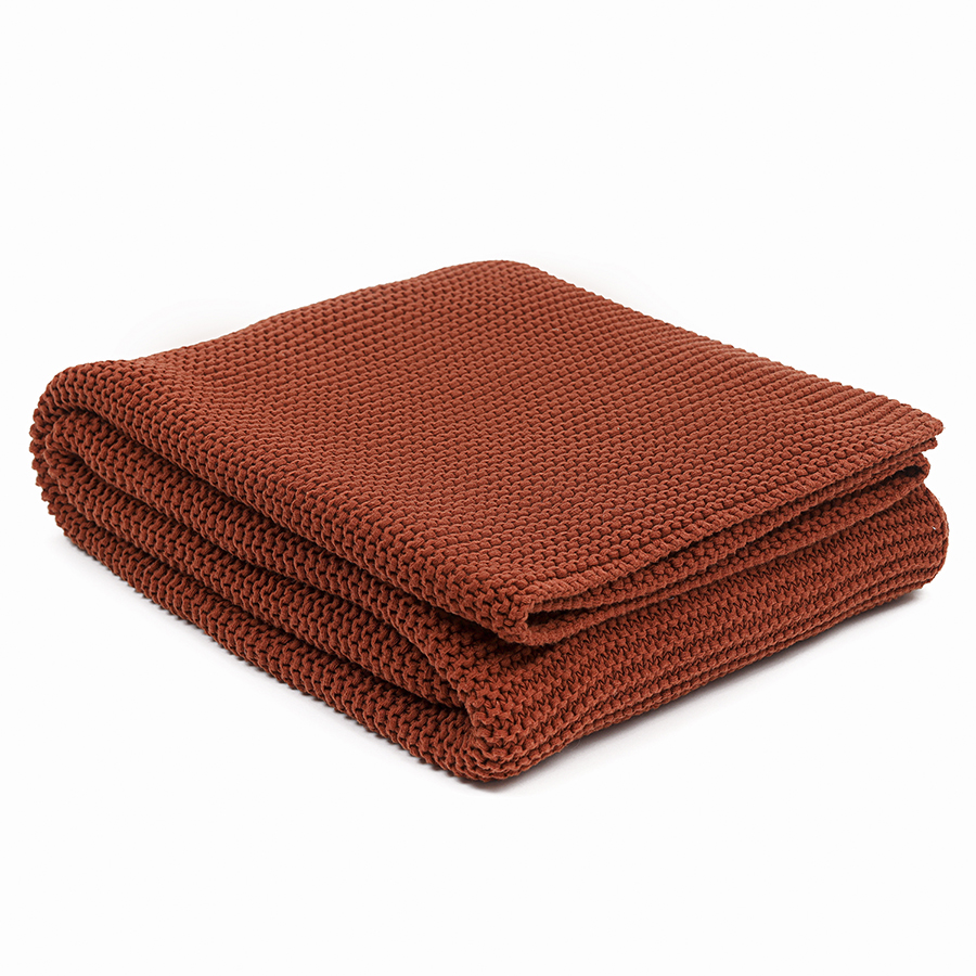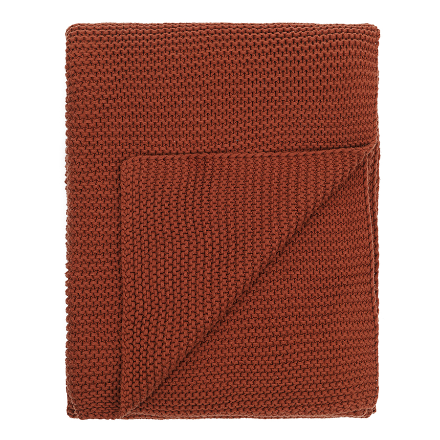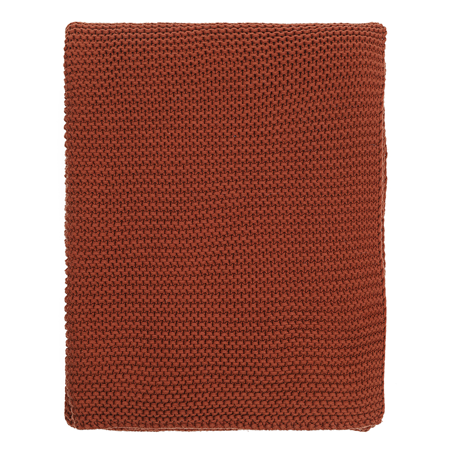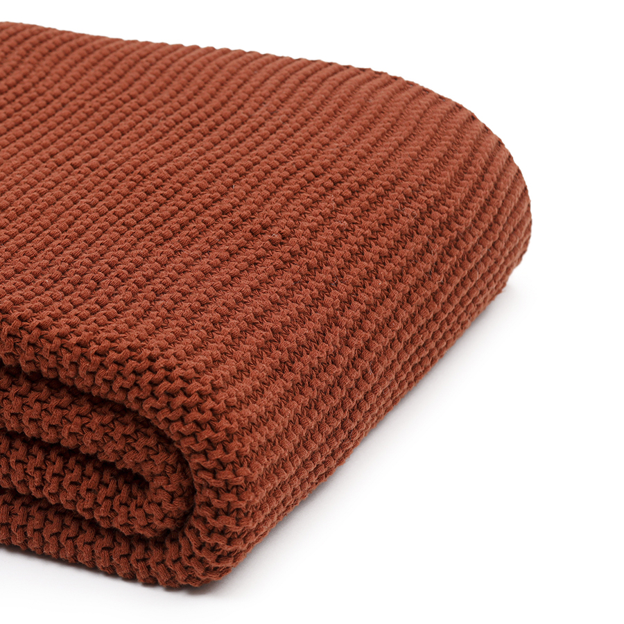 Плед из хлопка жемчужной вязки терракотового цвета из коллекции Essential, 130х180 см, Tkano