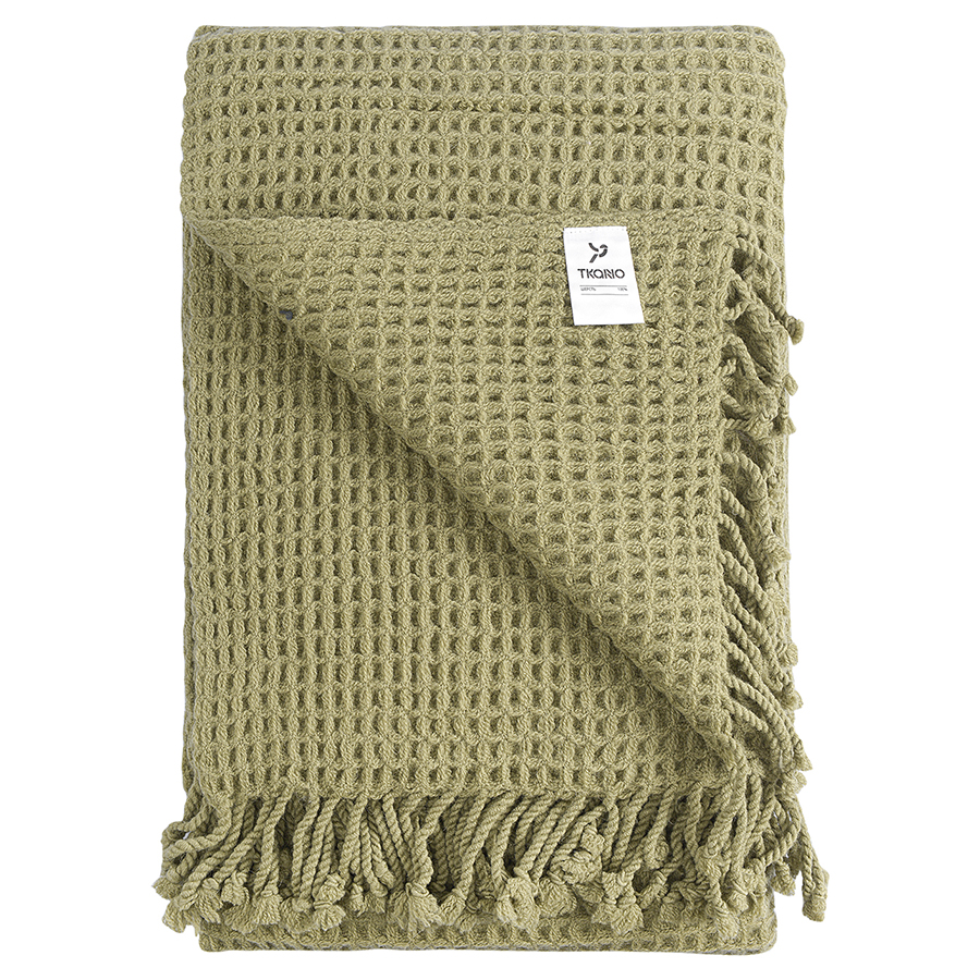 Плед из шерсти травянисто-зеленого цвета из коллекции Essential, 130х180 см, Tkano